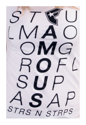 This is for a brand new with tags Famous Stars Straps Womens White Scroll Juniors T-Shirt Reads from left to right STFU OMG LMAO ROFL SUP ASAP