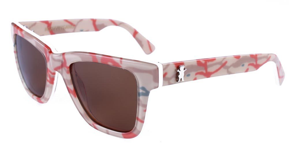 This is for a brand new pair of Grizzly Griptape Bear Rivets Tan Branch Camo Polarized Sunglasses Faded Acetate frames. Polarized lens. Metal side Bear rivets. Tan Camo allover print. Polarized Acetate Frames Polarized Lenses Metal side Bear rivets