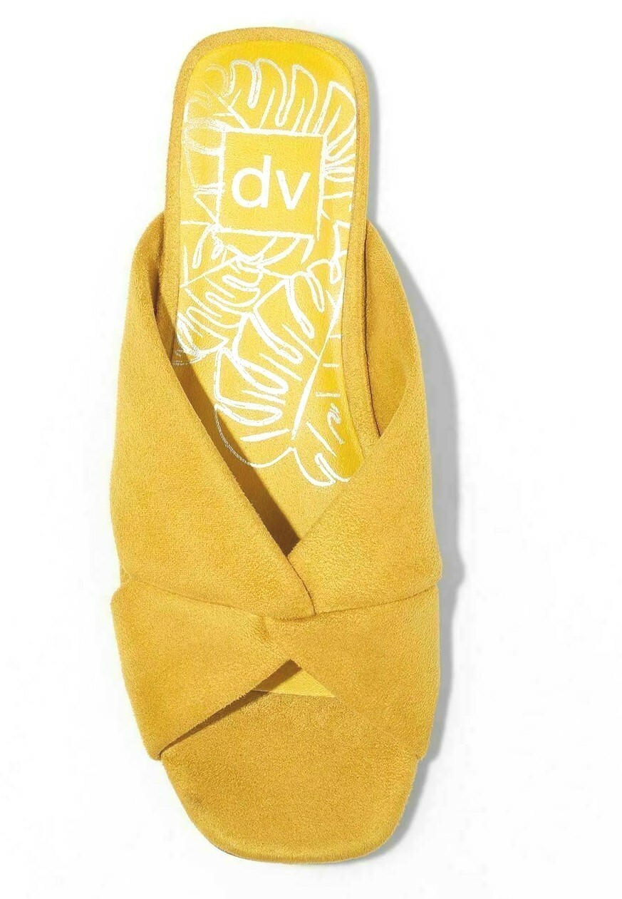 This is for a brand new pair of Women's dv Yellow Addie Microsuede Knotted Slide Sandals