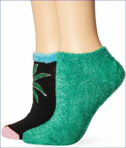 This is for a brand new 2-pack of HUE Holiday Palm Tree Footsie Socks in Gift Box no-show ankle socks soft and comfortable stretch fit green: 88% polyester, 10% nylon, 2% spandex tree: 60% cotton, 22%nylon, 2%spandex