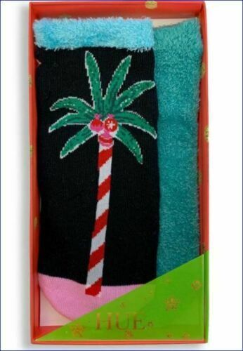 This is for a brand new 2-pack of HUE Holiday Palm Tree Footsie Socks in Gift Box