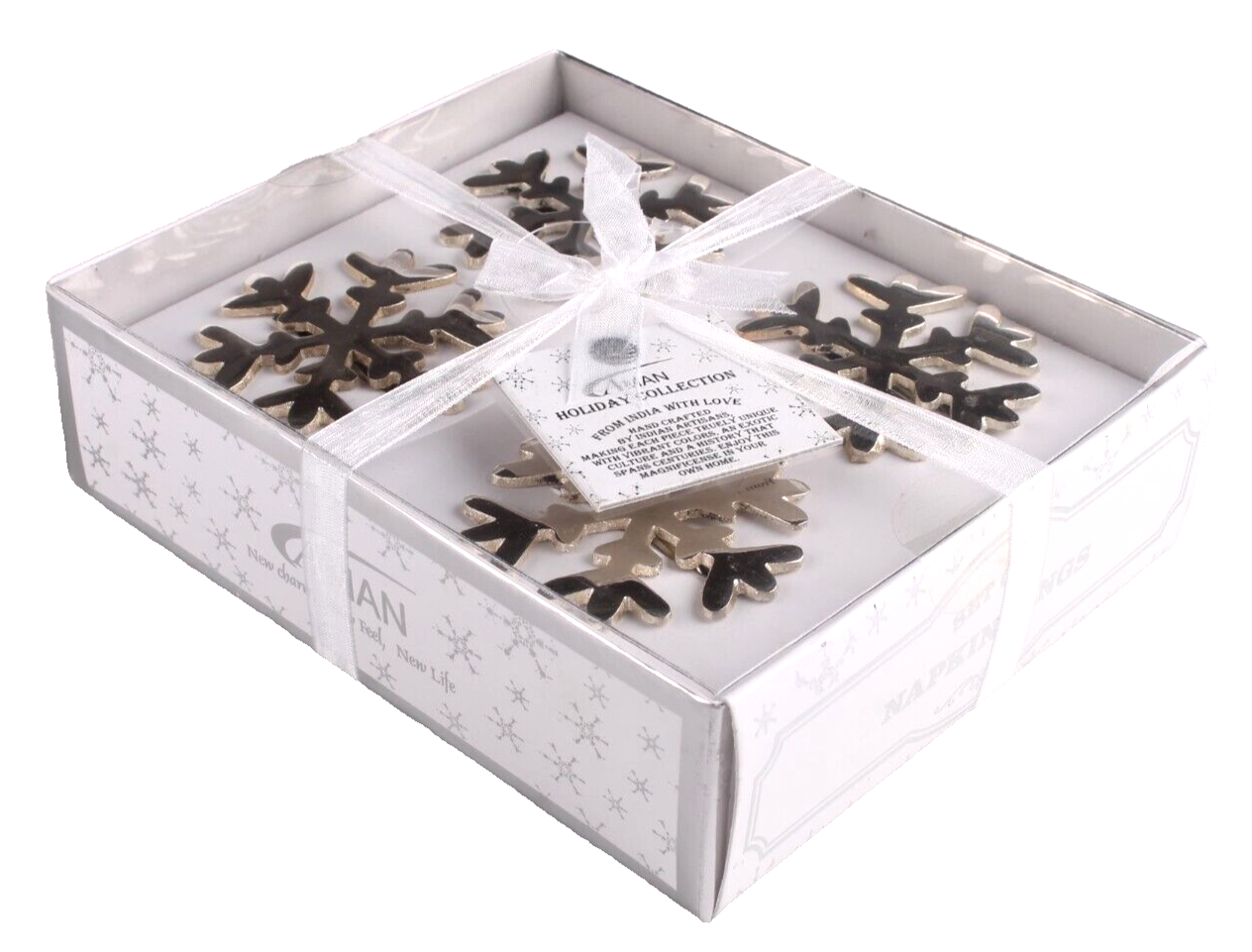 Aman Imports Lot De 4 Argent Ton Flocon Neige Serviette Anneaux Étuis Noël Table