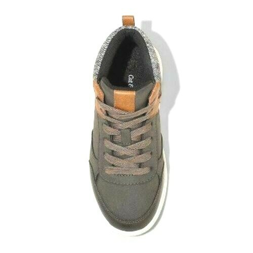Ceci est pour une toute nouvelle paire de balises de Cat Jack Boys Charcoal Jerry Hi-Top Faux Leather Lace Up Sneakers Chaussures