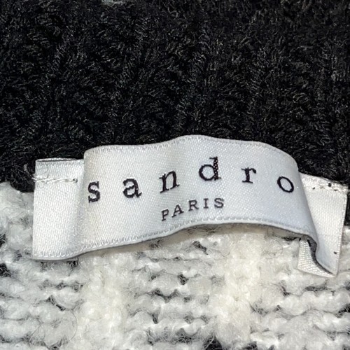 Sandro Houndstooth Sweater Black White Chunky Knit Oversized 2 Italy $400.