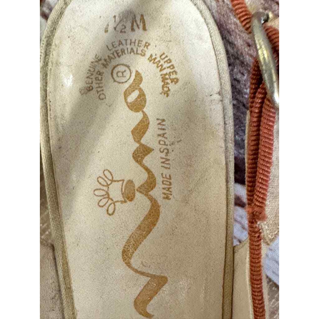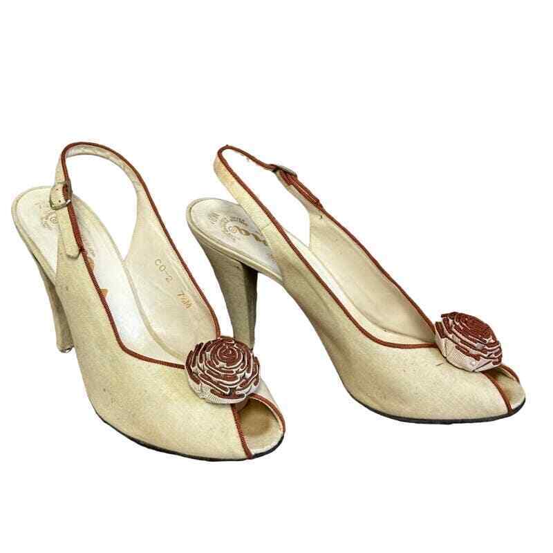 VTG Nina Leather Slingback Open Toe Heels Canvas/Leather w/ Flower 7 1/2 M