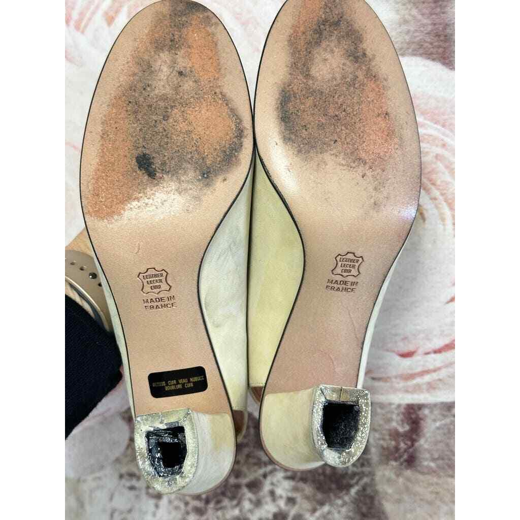 Vintage Espace Round Toe Sling Back Leather Slingback Cream France - stained, heel caps missing- best for costume.