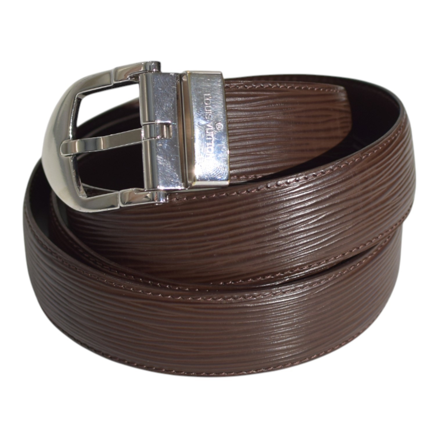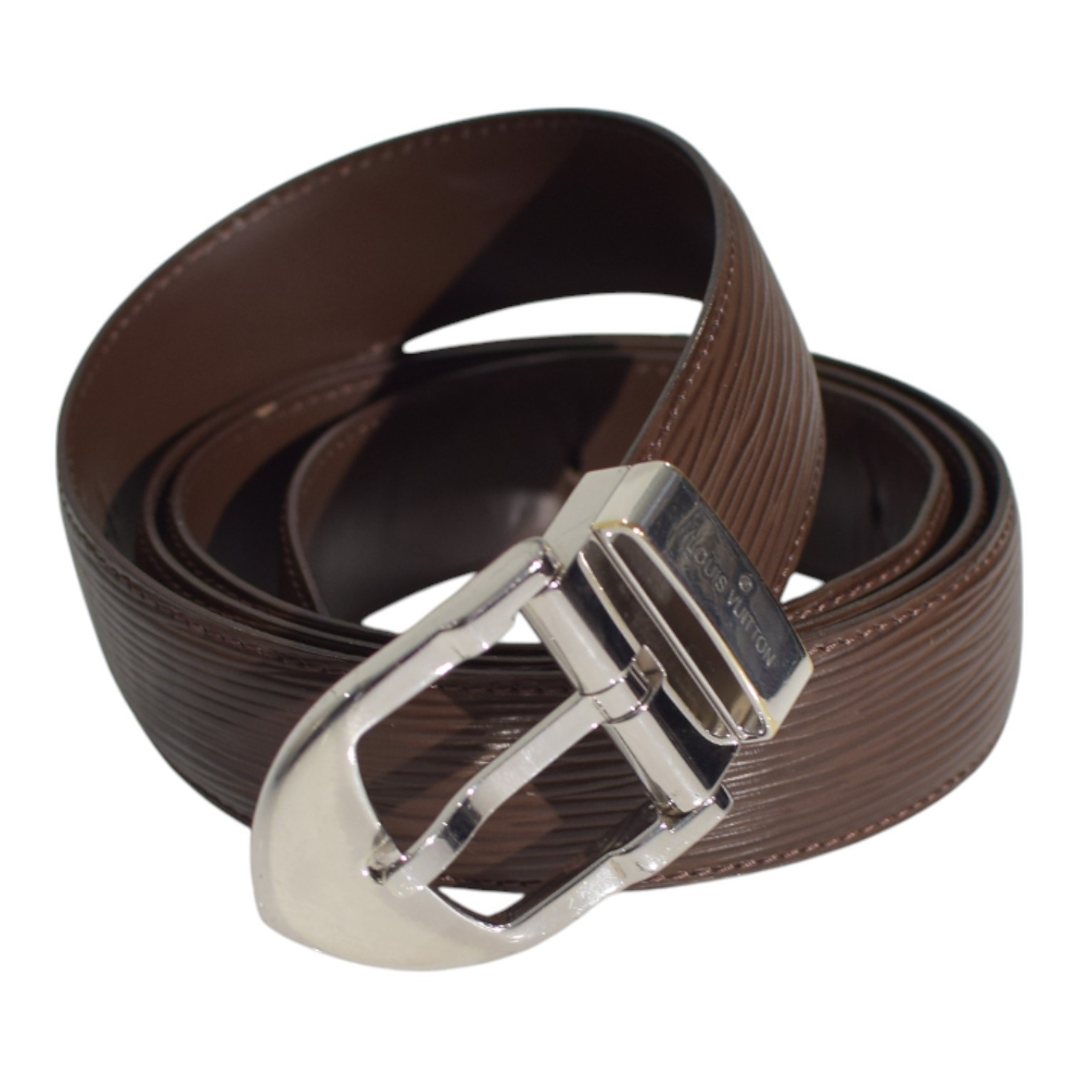 Louis Vuitton Brown epi Leather Belt Men's with silver tone buckle size 110/44