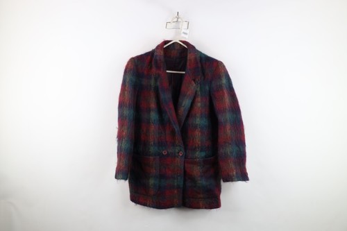 Vintage 90s Streetwear Womens 8 Rainbow Wool Mohair Shag Blazer Suit Jacket USA