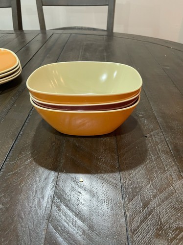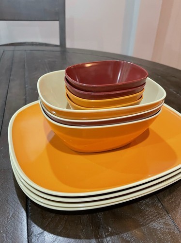 Pier One Imports Orange Red MCM Square Melamine 4 Plates 7 Bowls.