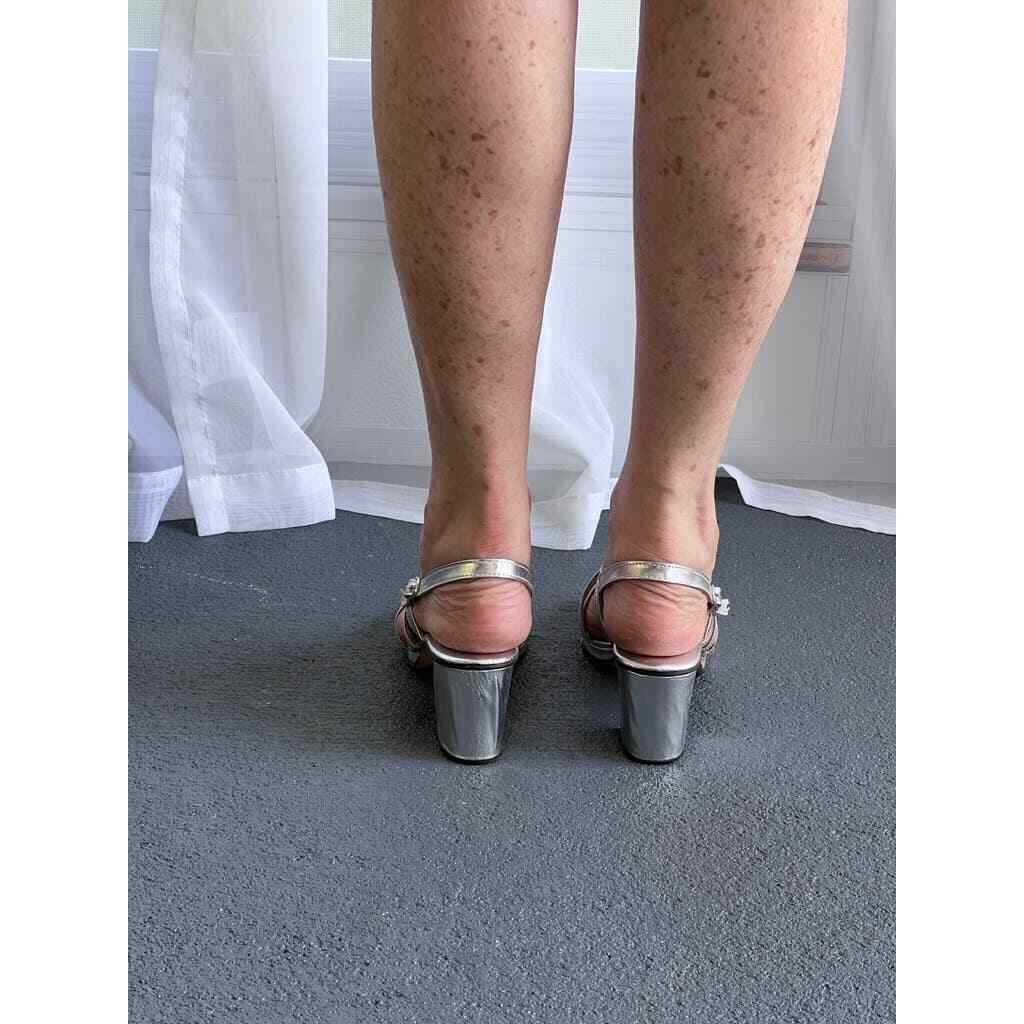 70s Young Mades VTG Sz 8 1/2 Metallic Silver Strappy Slingback Block Heel