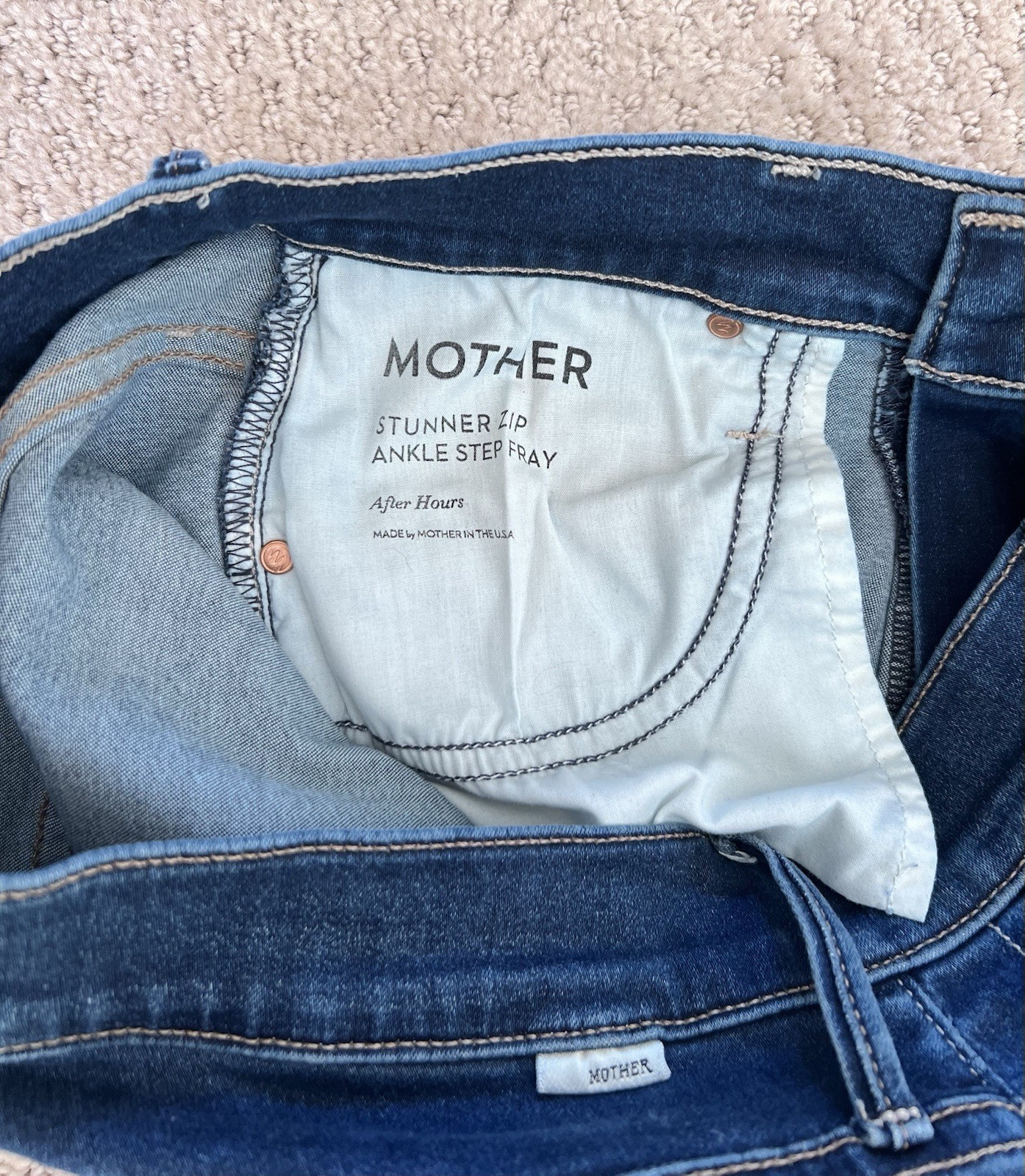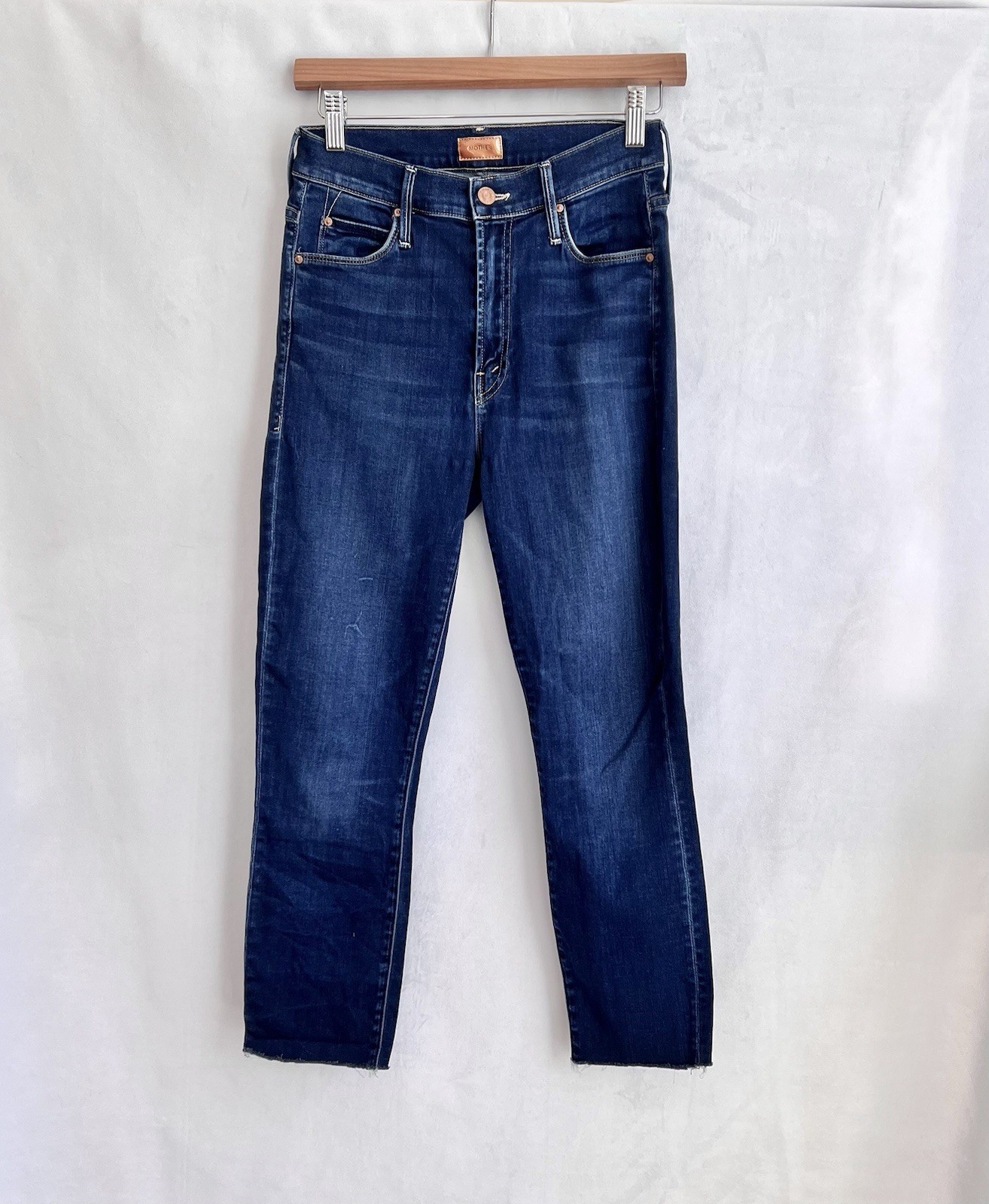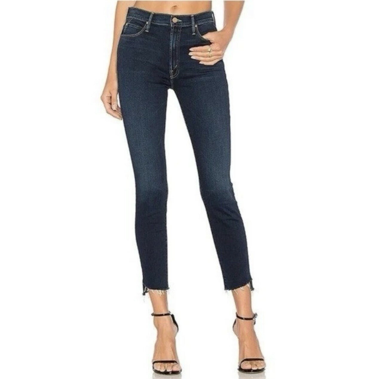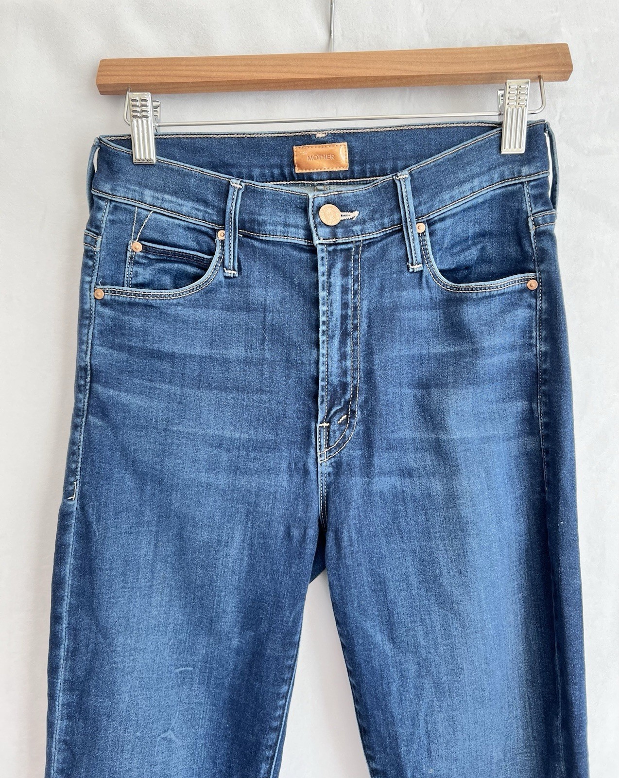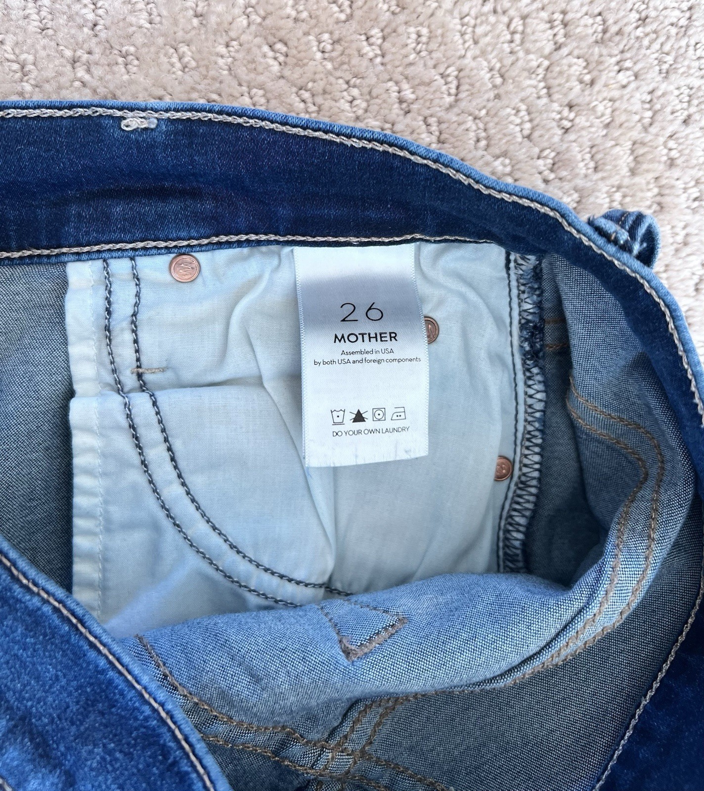 Mother The Stunner Zip Ankle Fray High Rise Jeans Dark Washed Stretch Denim 26