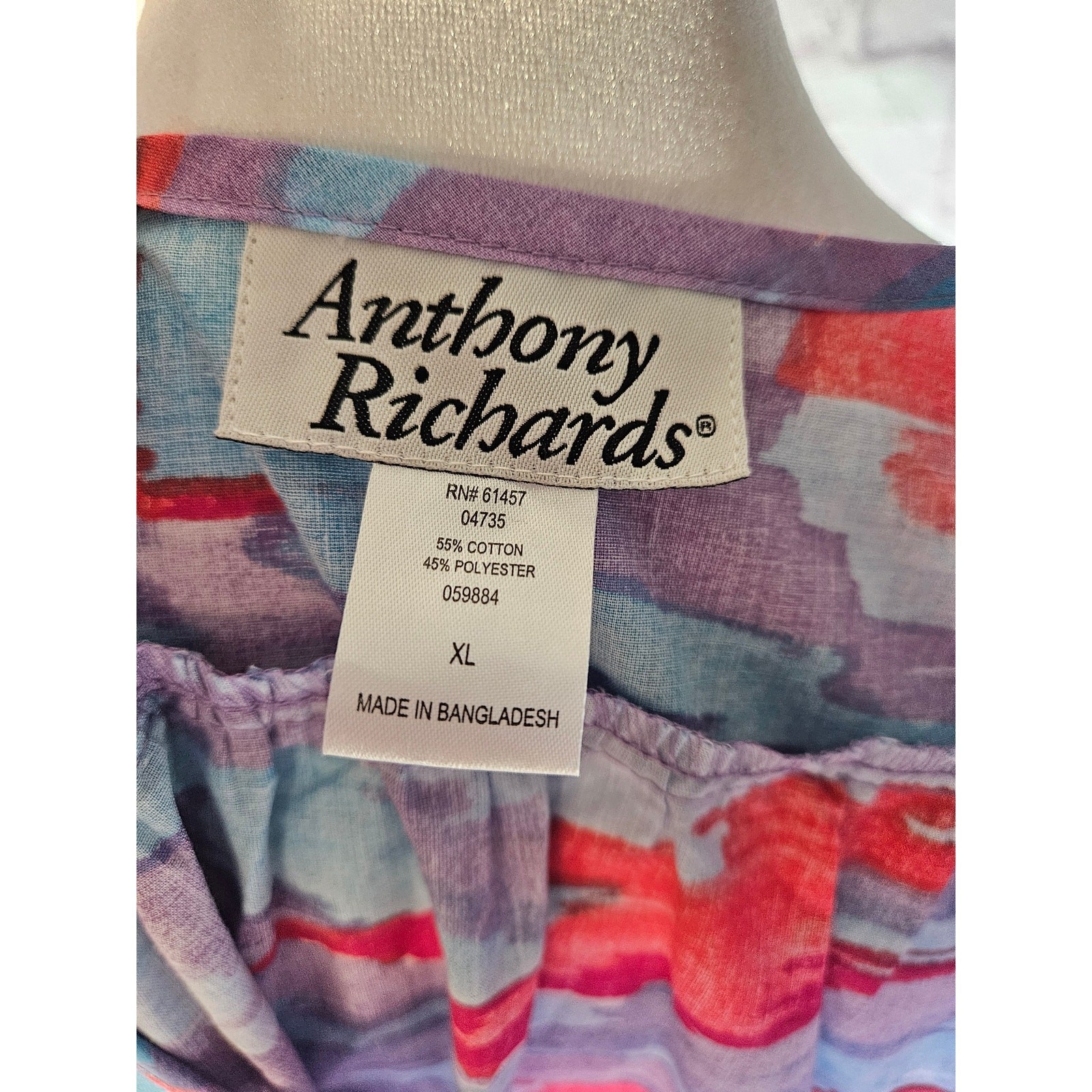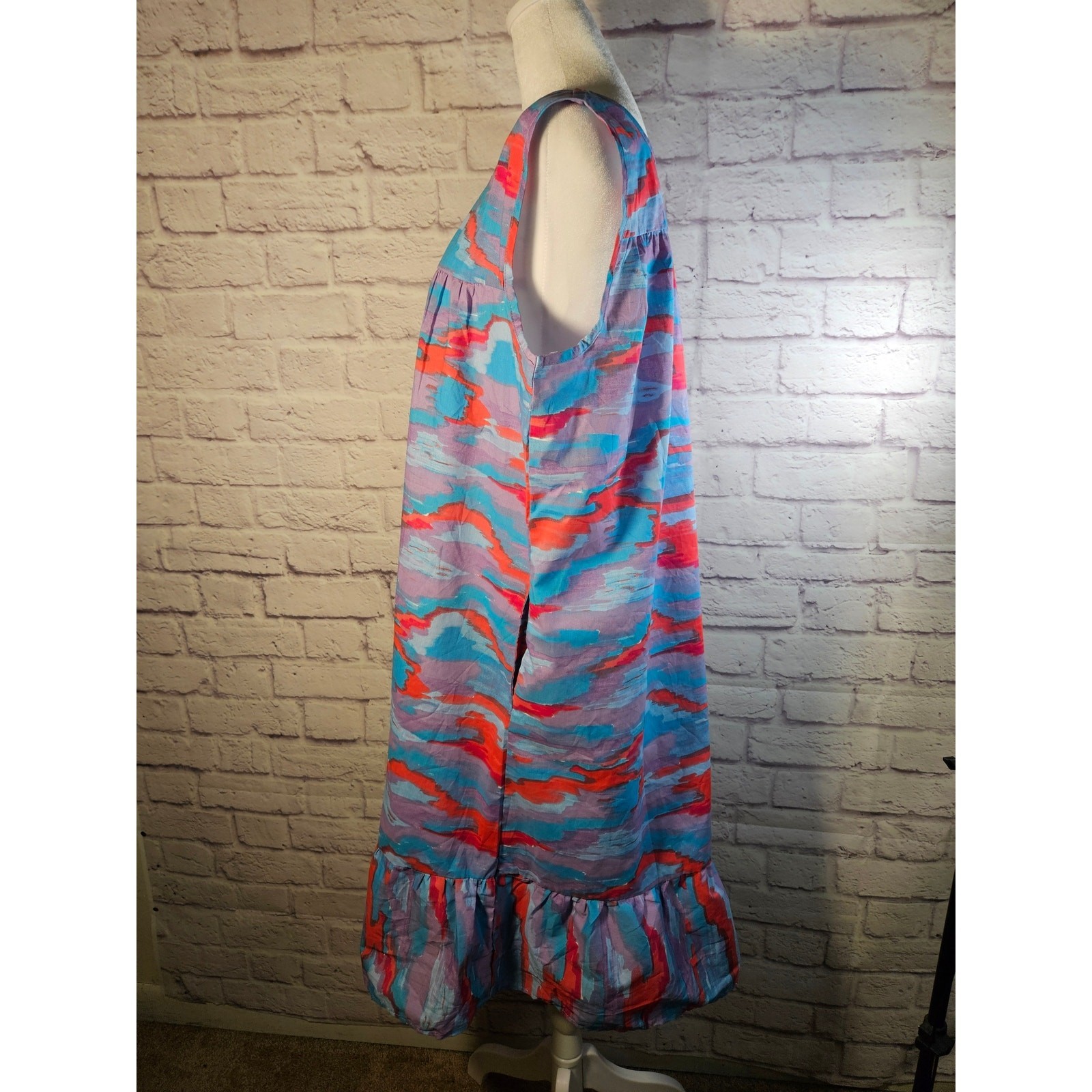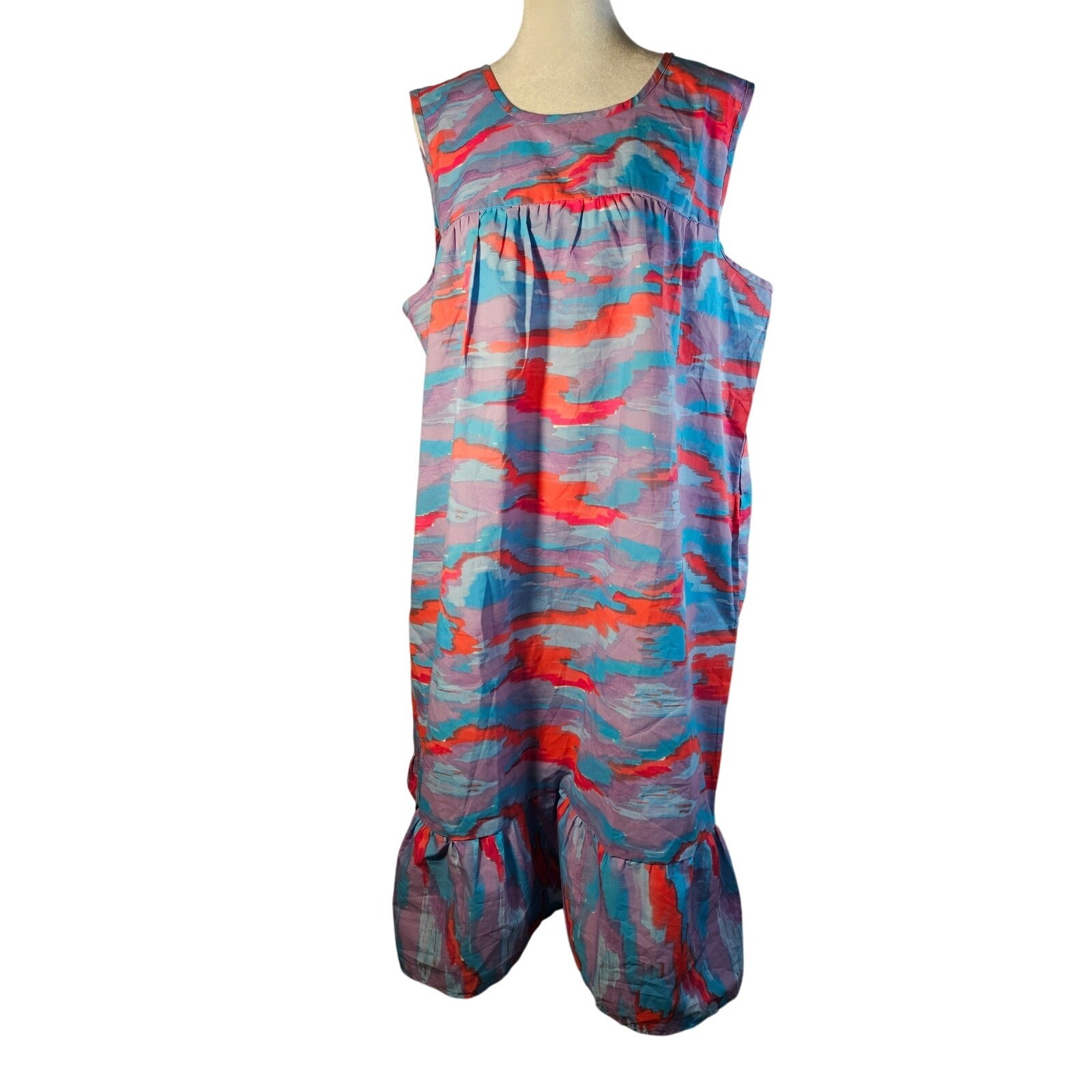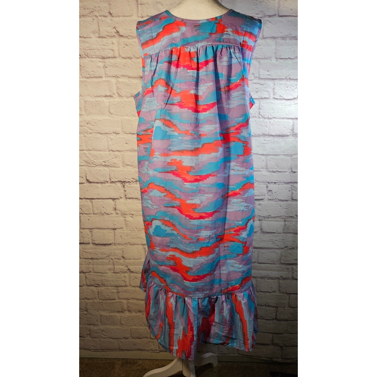Anthony Richards Dress Ruffle Brush Strokes Sleeveless W/Pockets Size XL NEW