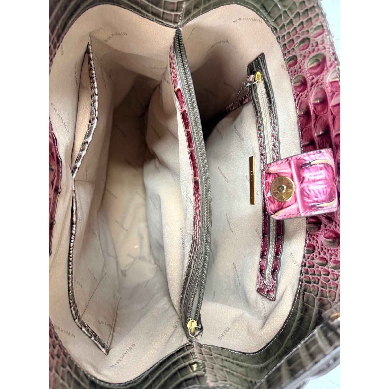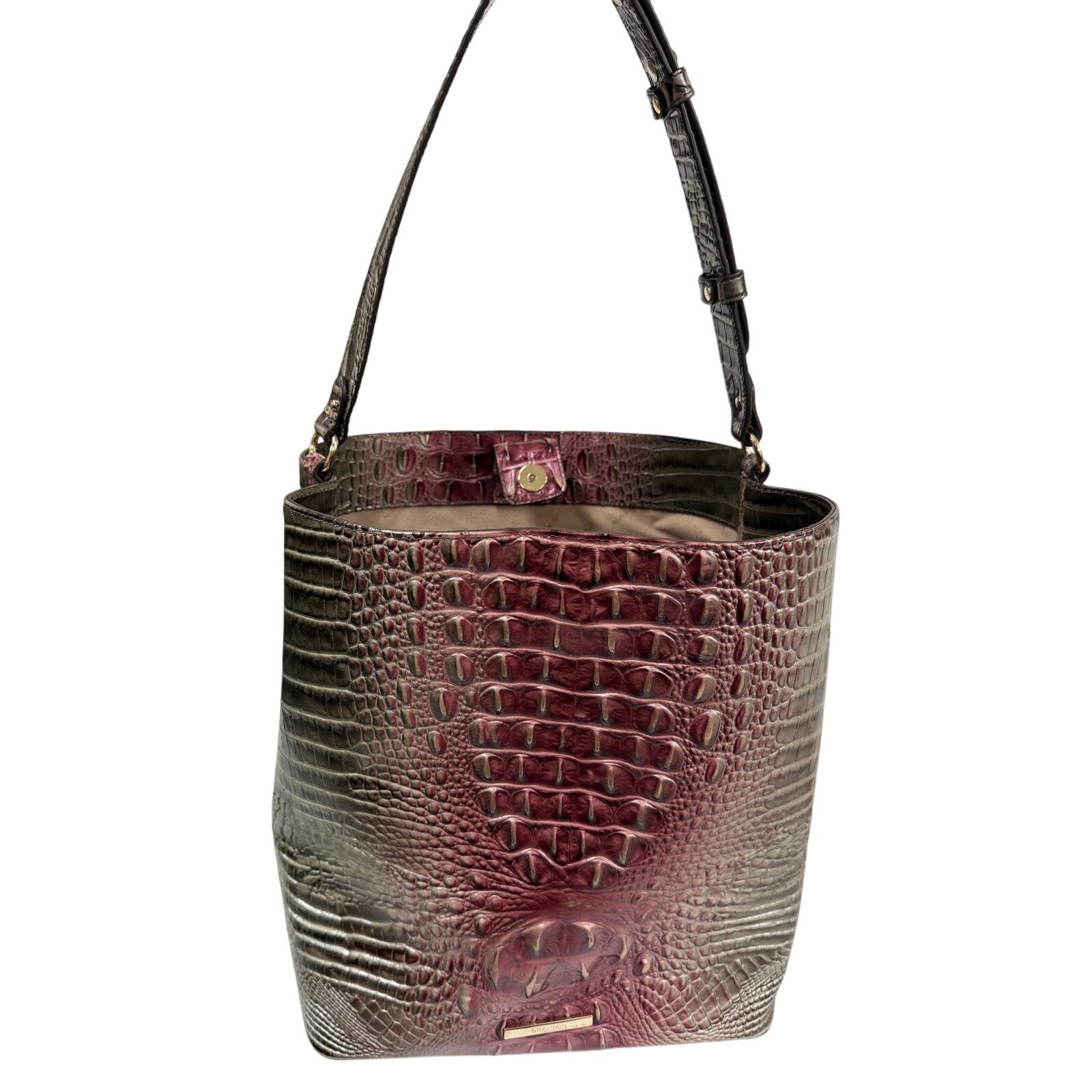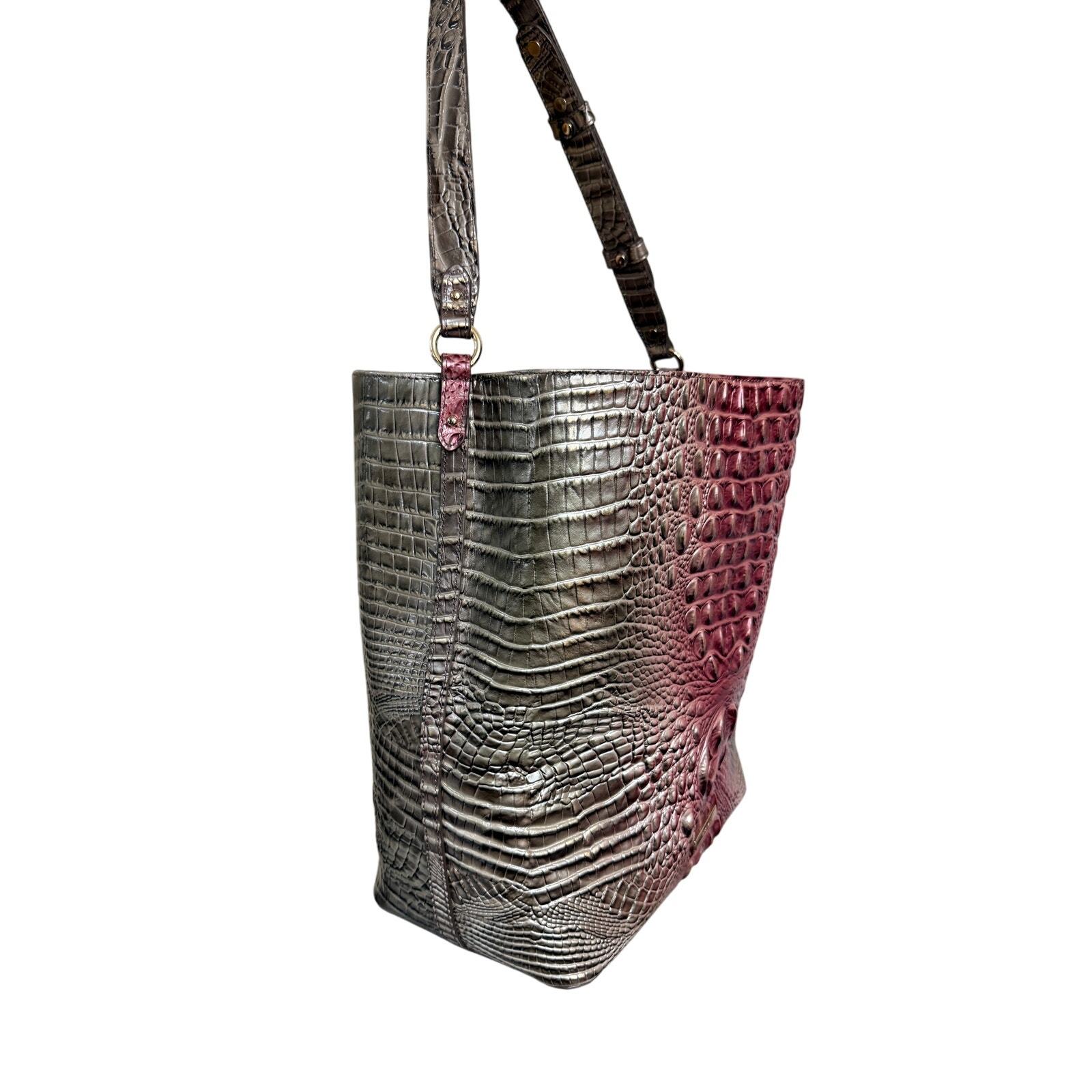 VTG Brahmin Large Amelia Garnet Ombre Melbourne Croc Embossed Tote Bag