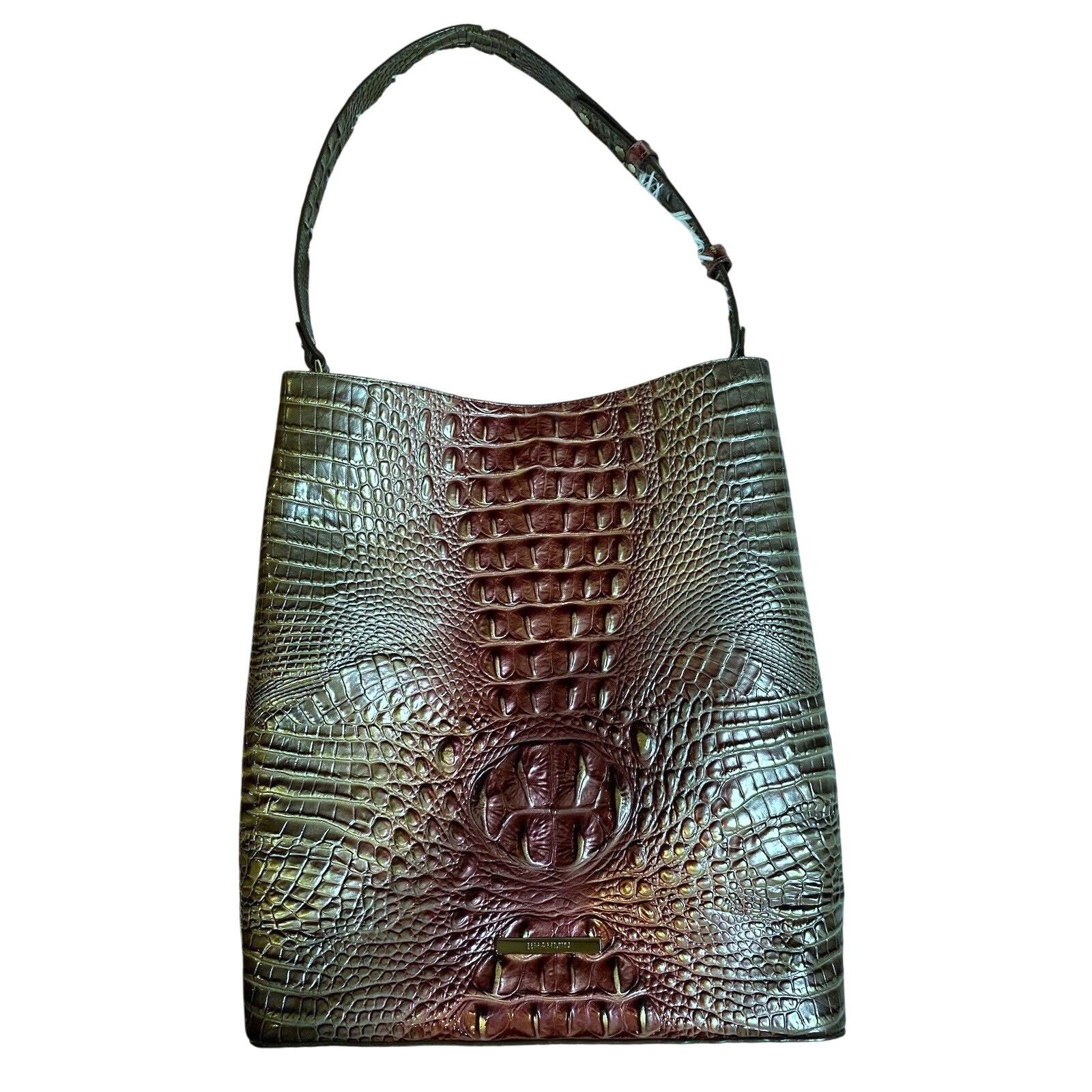 This VTG Brahmin Large Amelia Tote in Garnet Ombre Melbourne croc-embossed leather is a stunning example of the brand?s signature craftsmanship. What you?ll love about this piece is its rich ombre fade from deep wine red to smoky bronze ? dramatic yet versatile for everyday luxury.