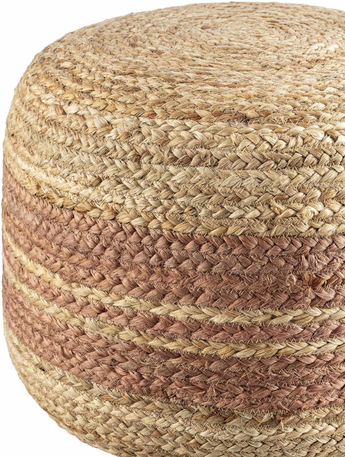 Perfect for transitional or traditional styles, this pouf embodies the warmth of natural fibers and the artistry of Indian craftsmanship. Its beige hue, along with available options in camel, brick red, and desert tan, allows it to seamlessly complement farmhouse or bohemian interiors, adding a touch of earthy charm to your home.