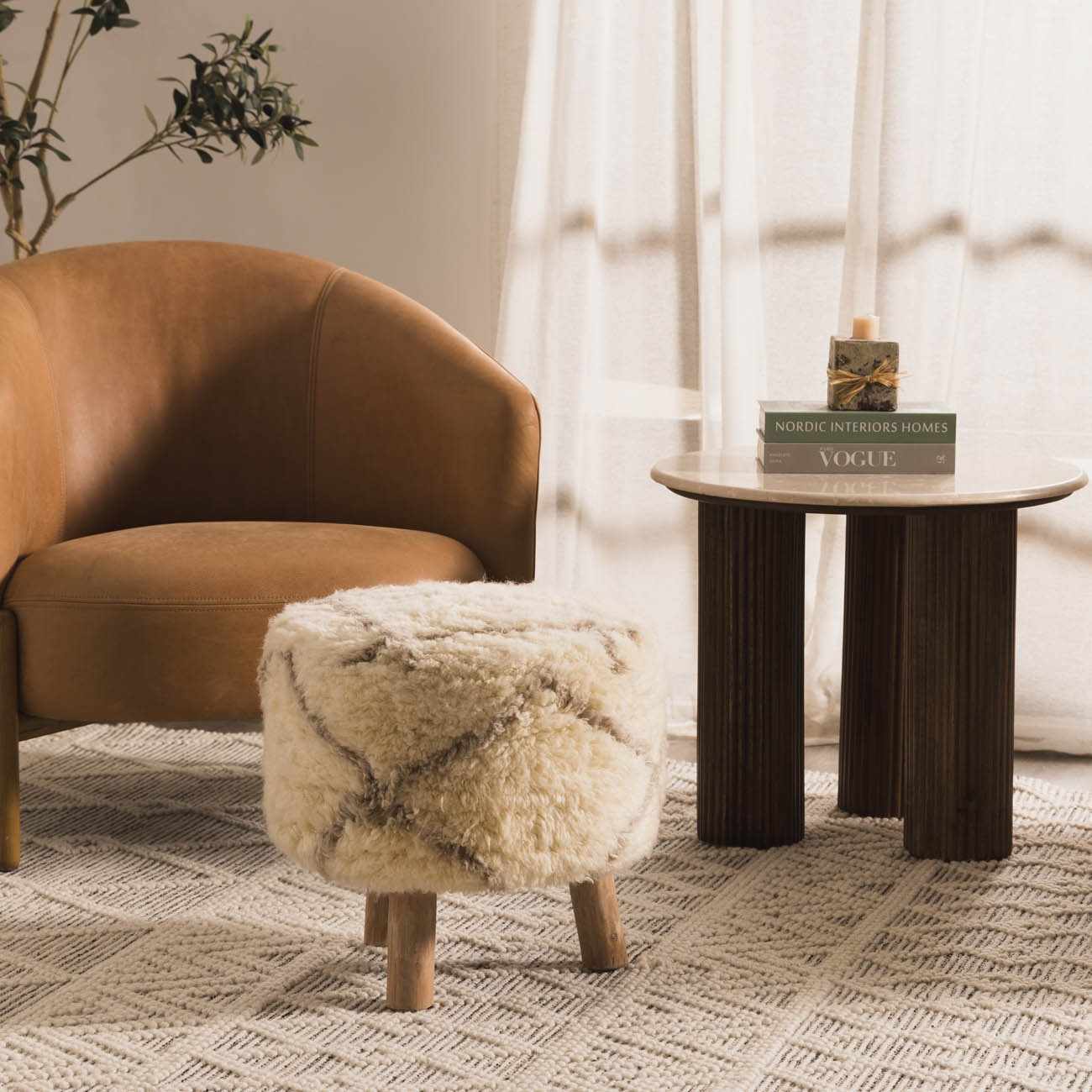 Sommatino Cream Wool Ottoman With Mango Wood and 50 similar items
