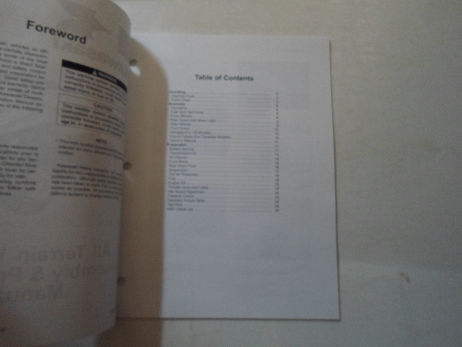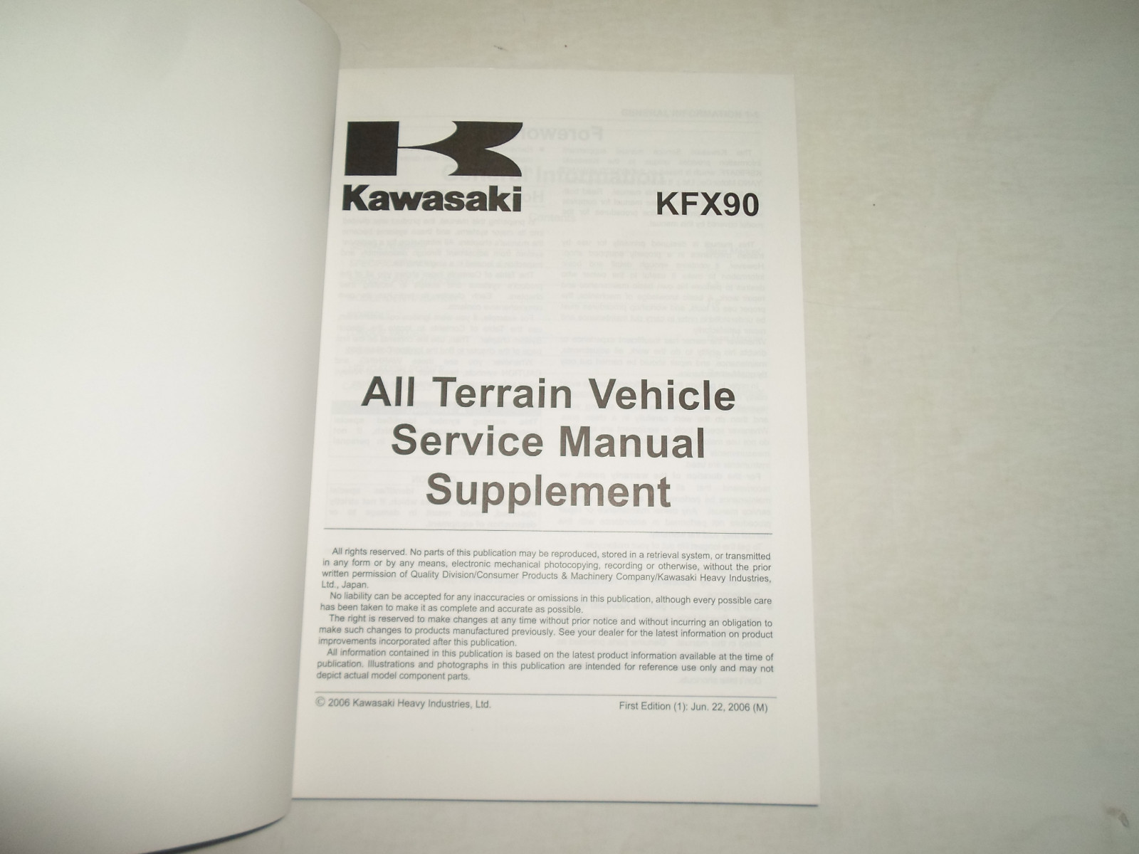 2007 Kawasaki KFX 50 All Terrain Vehicle ATV All Terrain Vehicle Assembly Preparation Manual COVERS LIMITED INFORMATION, no missing pages, step by step instructions, great manual to have when you own Kawasaki. We will leave POSITIVE Feedback after we receive your payment. Please do not forget to give us POSITIVE Feedback and FIVE Stars on all of the Detailed Seller Ratings! If you are not satisfied with your shopping Experience, please contact us to get a solution before you decide to leave a NEUTRAL or a NEGATIVE Feedback, We will do our best to solve any problems for you as soon as possible. We will provide you with the BEST POSSIBLE service because the POSITIVE Feedback and FIVE Stars are what we are striving for. Please email me through "My Messages" or "Ask Seller Questions" if yo