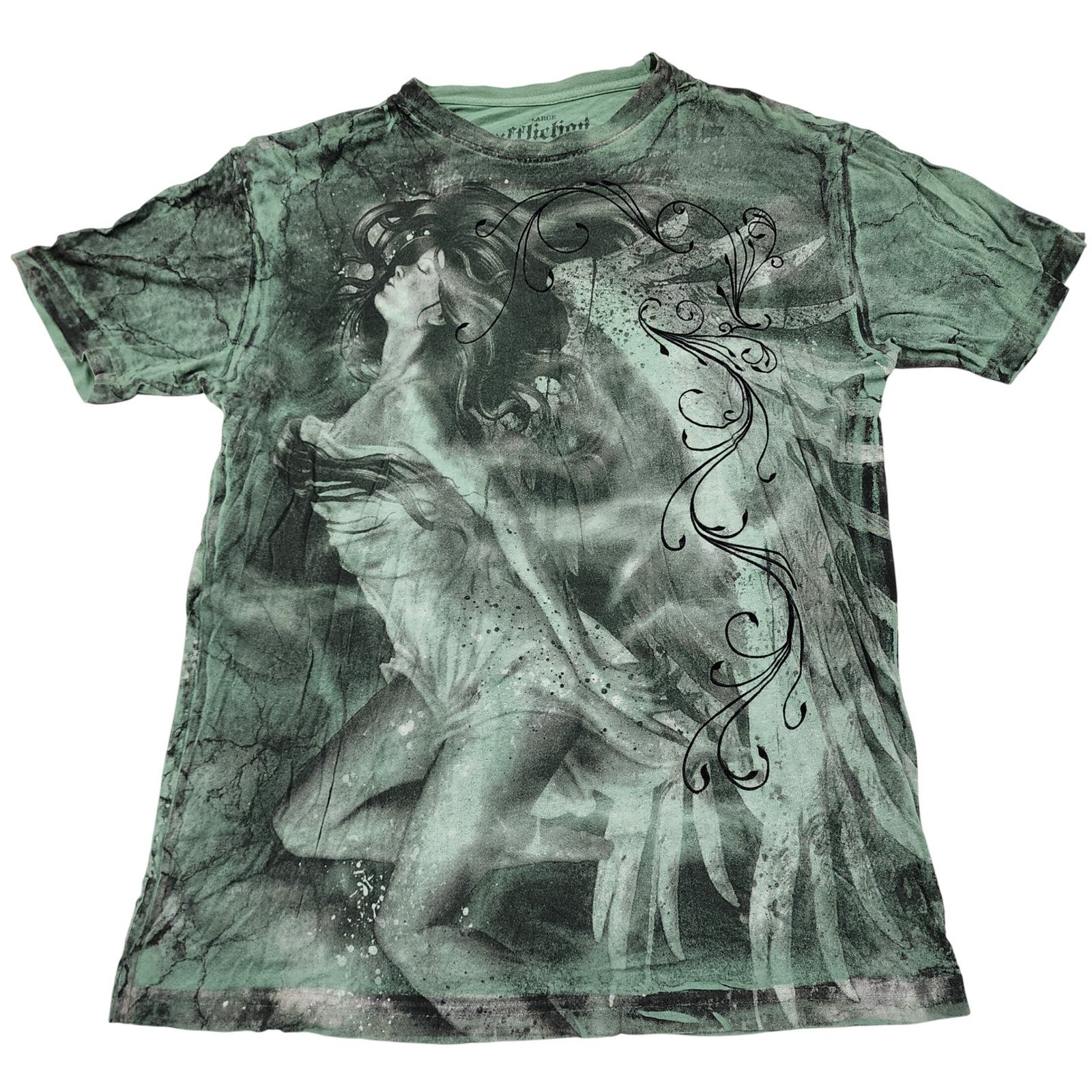 Affliction Bamboo T Shirt Green Graphic Angel Wings Los Angeles Mens L Large MMA