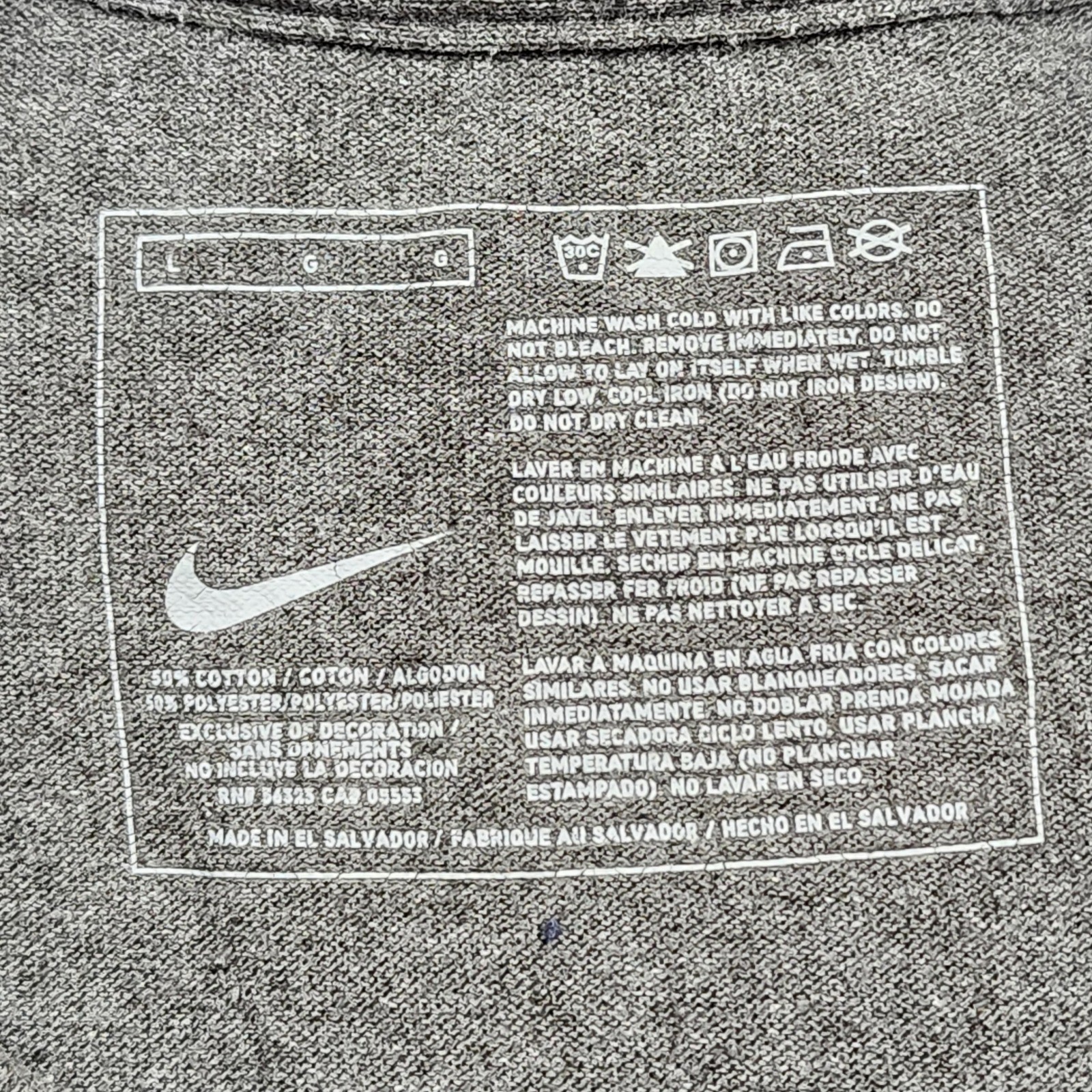 Keywords: Nike T-Shirt, Mens T-Shirt, Gray T-Shirt, Logo T-Shirt, Crew Neck T-Shirt, Cotton Blend T-Shirt, Casual Top, Nike Top, Menswear, Athletic T-Shirt, Sportswear, Large T-Shirt, Graphic Tee, Basic Tee, Y2K