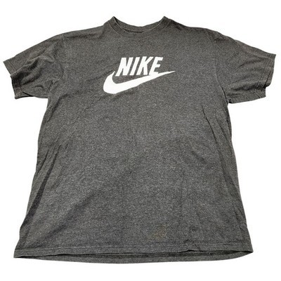 Nike Gray T-Shirt Mens Large White Logo Crew Neck Cotton Blend Casual Top Shirt