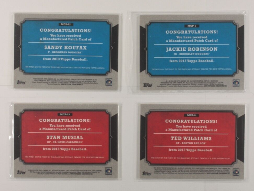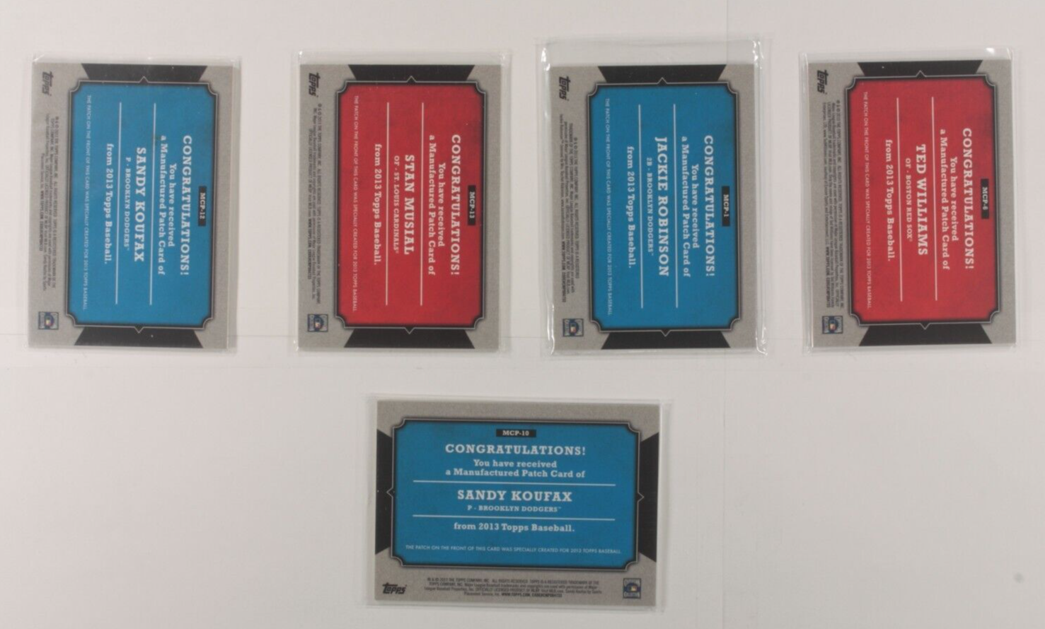 Lot Of 5 Topps Manufactured Patch Cards Robinson, Williams, Musial, Koufax