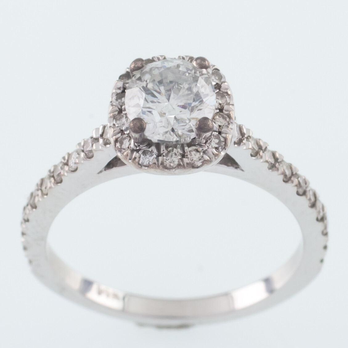 14k White Gold Diamond Solitaire Ring W/ Accents TDW 1.10 ct Size 3.75 W/ Cert