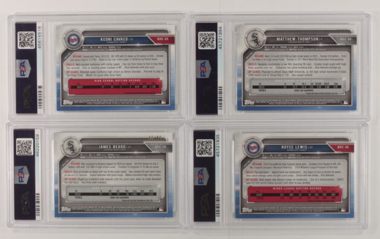 Lot Of 4 PSA 10 2019 Bowman Chrome Draft Sapphire Lewis, Thompson, Beard, Cavaco