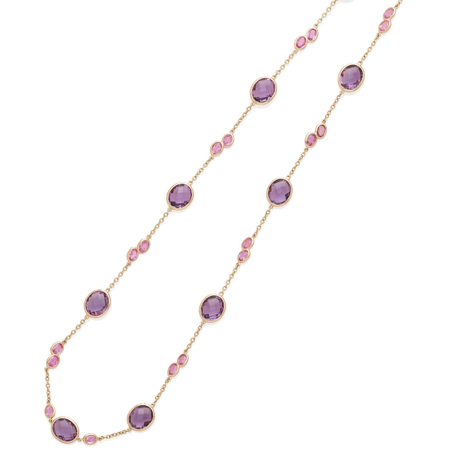 Paolo Costagli Amethyst and Pink Sapphire 18k Rose Gold Station Necklace 41-3/4"