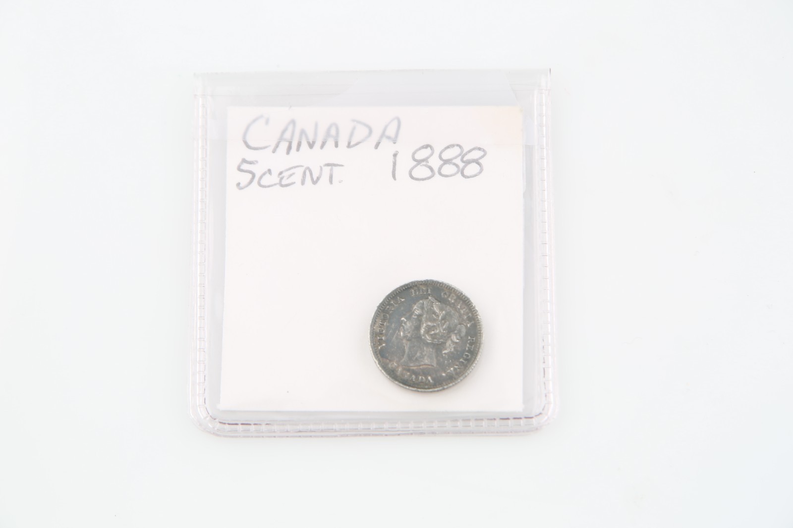1888 Canada 5 Silver Coin AU Toned RCM 5C Five Cents Almost Uncirculated KM#2 1888 Canadian Five Cents silver coin (5) Minted at the Royal Canadian Mint in Ottawa, Canada Condition: Ungraded; expected to grade almost uncirculated (AU); toned Catalog number: KM#2, PCGS#30972 *Expected grades are approximate. All items are professionally packaged and shipped. All shipments include insurance and delivery confirmation or signature confirmation. Local Pick-up is available in our showroom. (Contact us for payment methods to pay on pickup.) California Buyers: 9% sales tax will be added. Returns Policy: About us: Continental Coin and Jewelry Company Web Department: Monday ? Friday, from 10:30am ? 6:00pm PST Visit Our Store: Continental Coin and Jewelry Reference Item # FCC-1970 JBC 6/11/1