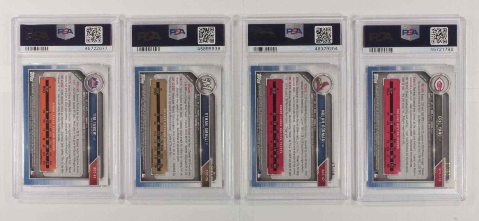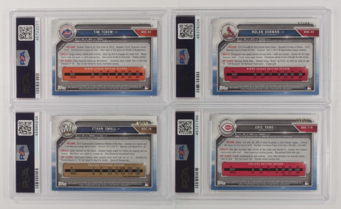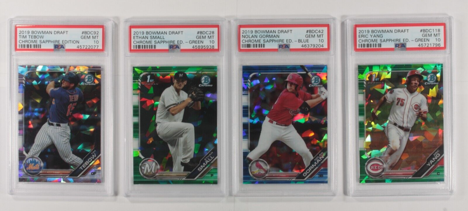 Lot 4 2019 PSA 10 Bowman Chrome Draft Sapphire Cards Small, Tebow, Gorman, Yang