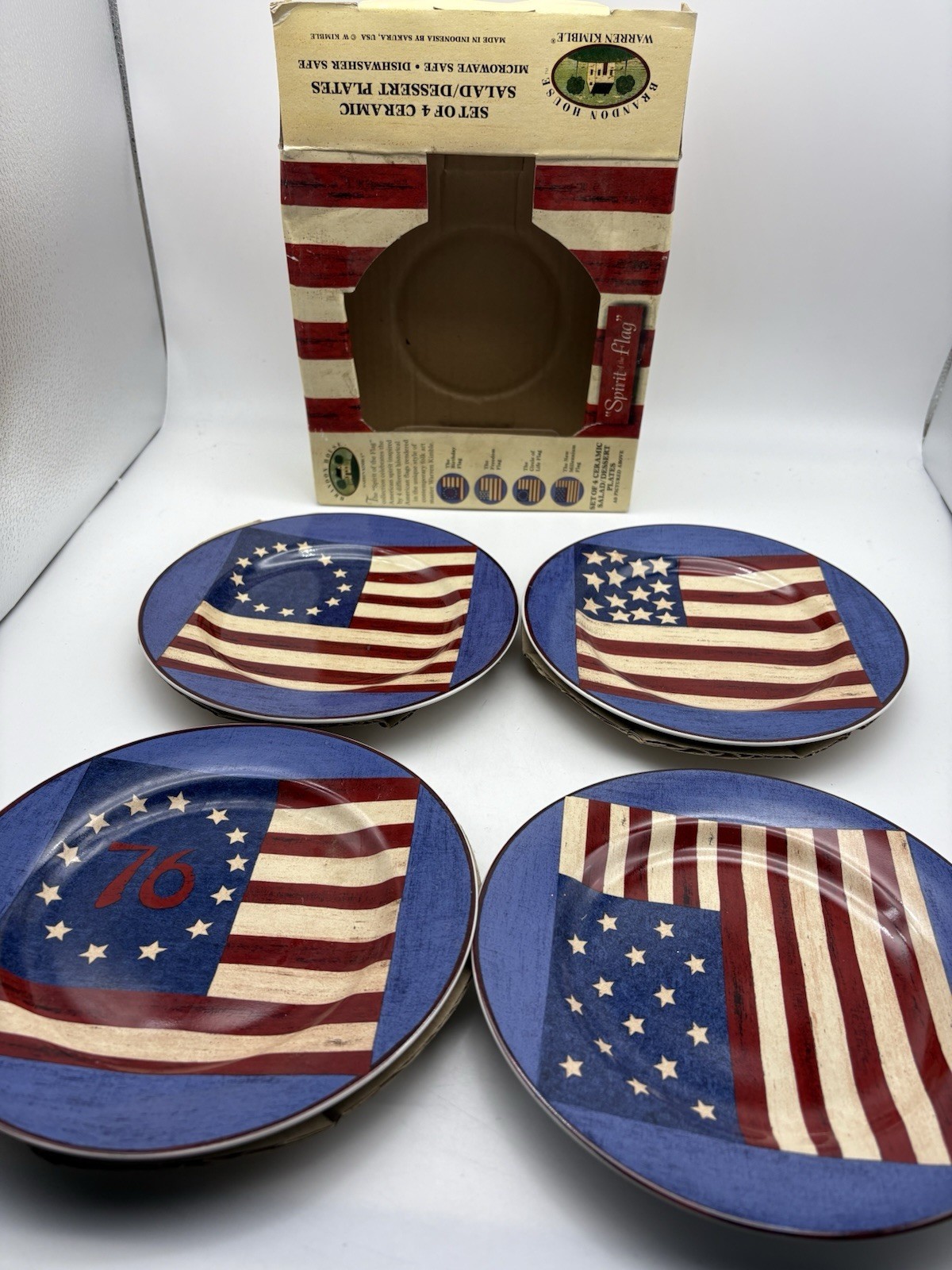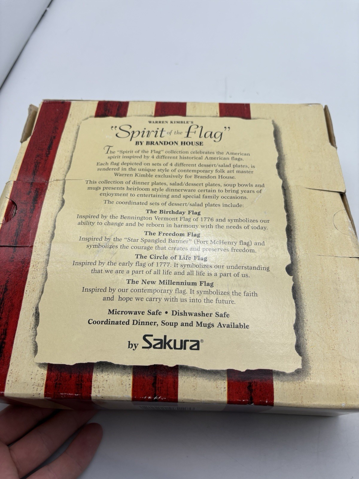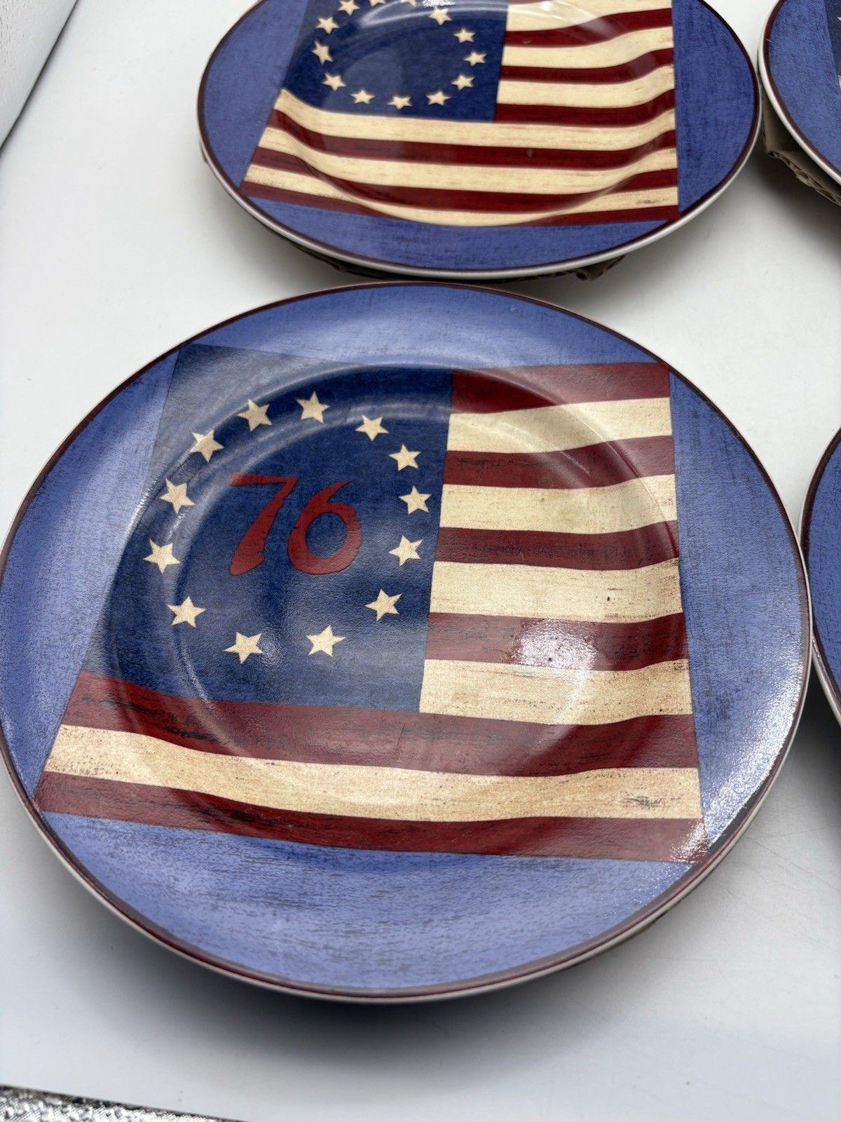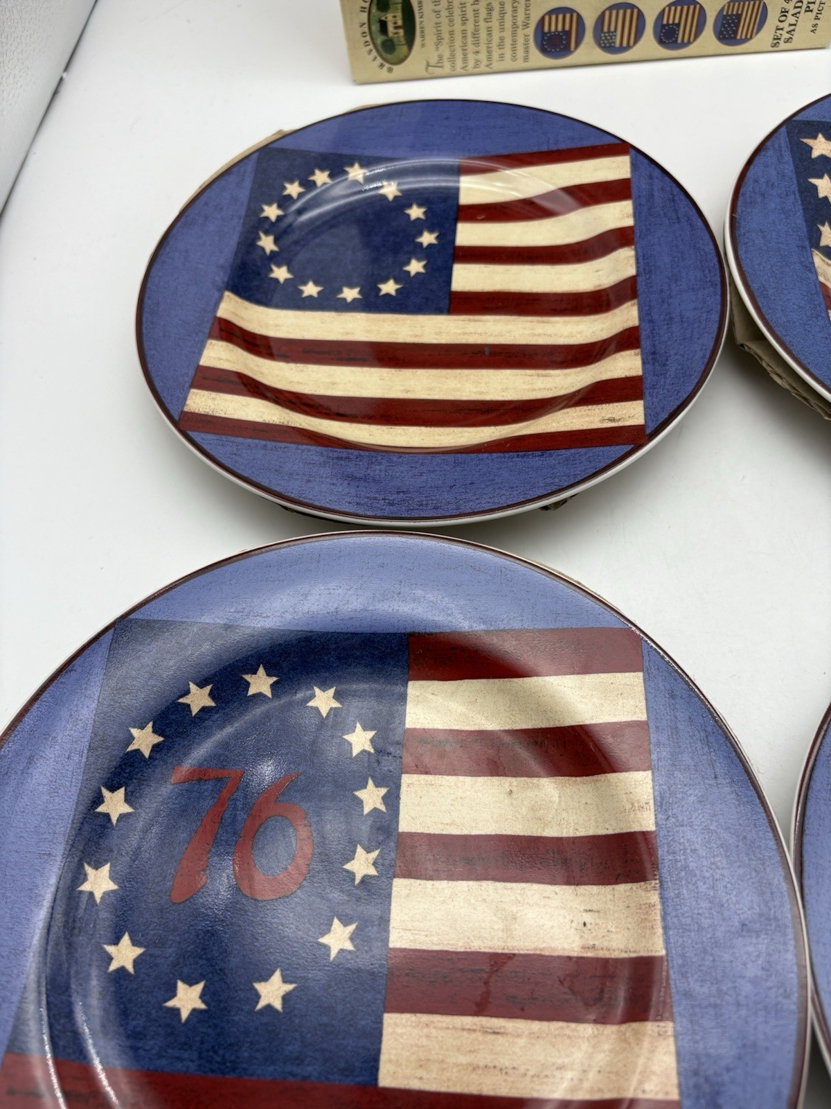 4 Sakura Brandon House Warren Kimble Spirit Of The Flag Salad Plates 8.25" NEW