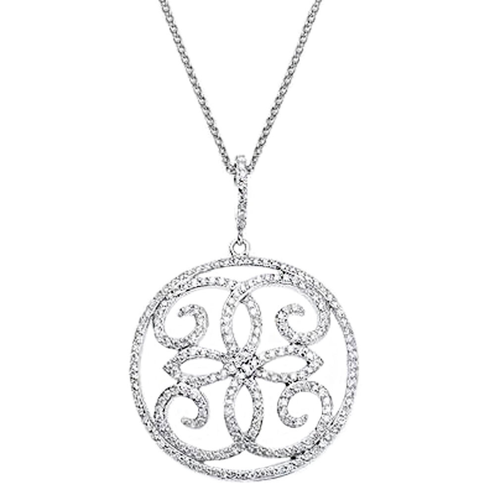0,95 Karat Scroll Design Rundschliff Diamantkette 16'' Anhanger 14k Weißgold