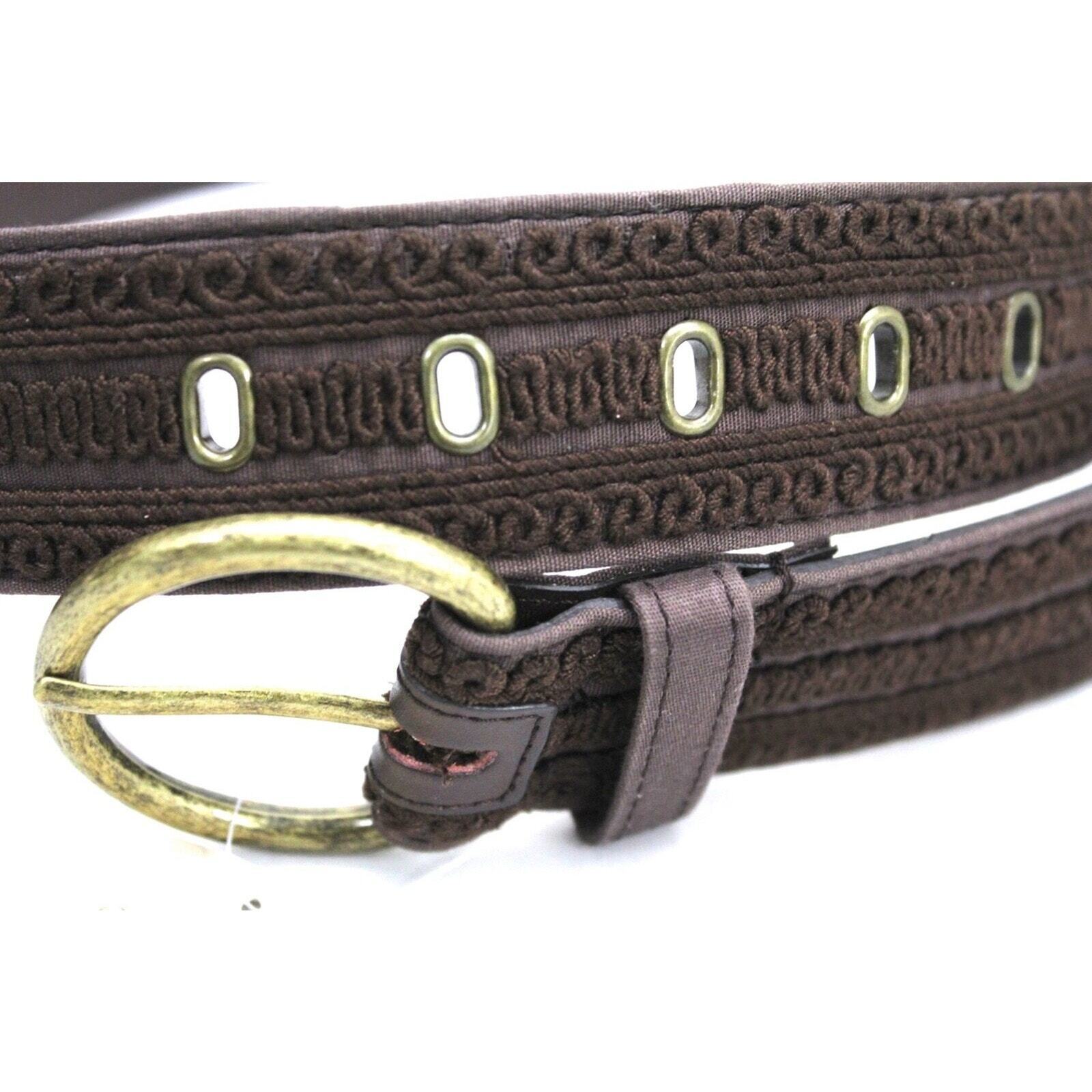 Coldwater Creek Sz S Soutache Belt Brown Brushed Brass Trim New MSRP $49.95