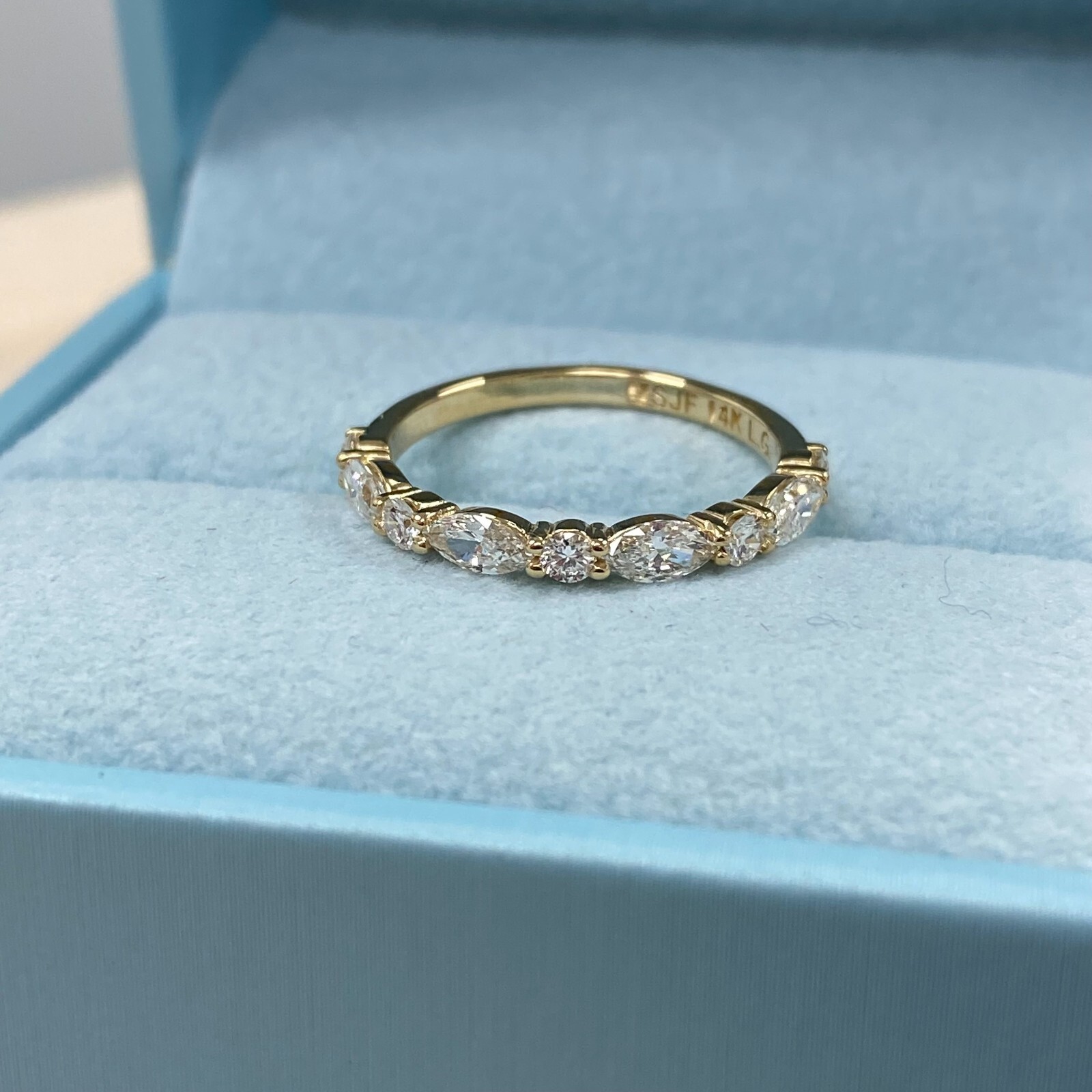 0.70 Karat Rundem Und Marquise Abwechselnd Lab Grown Diamant Trauring 14k