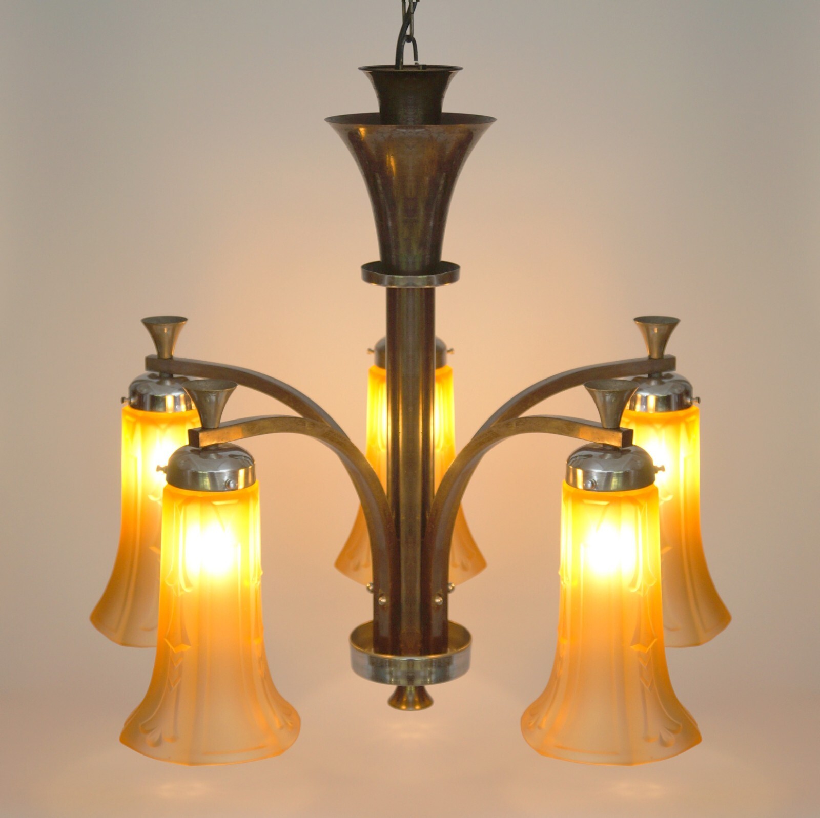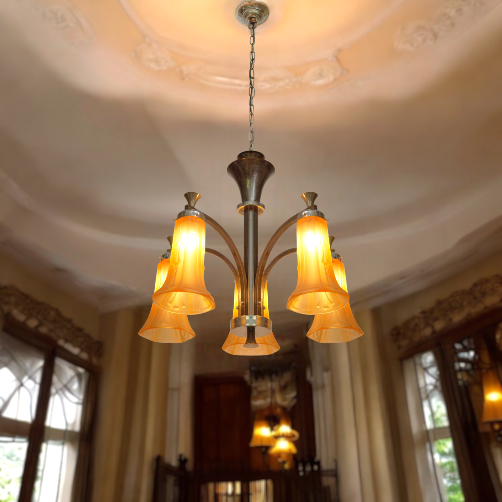 Unique original Art Deco ceiling candlestick "Five Directions".