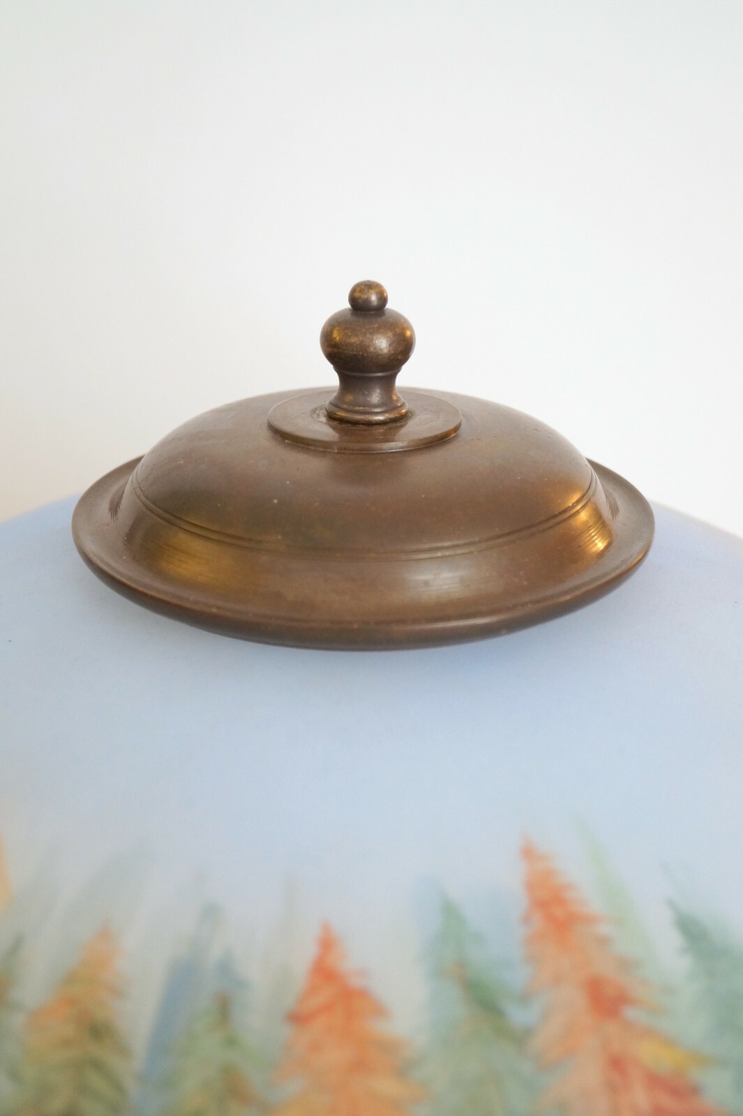 Large hand -painted Art Nouveau table lamp "Bavaria Blue" bronze unique