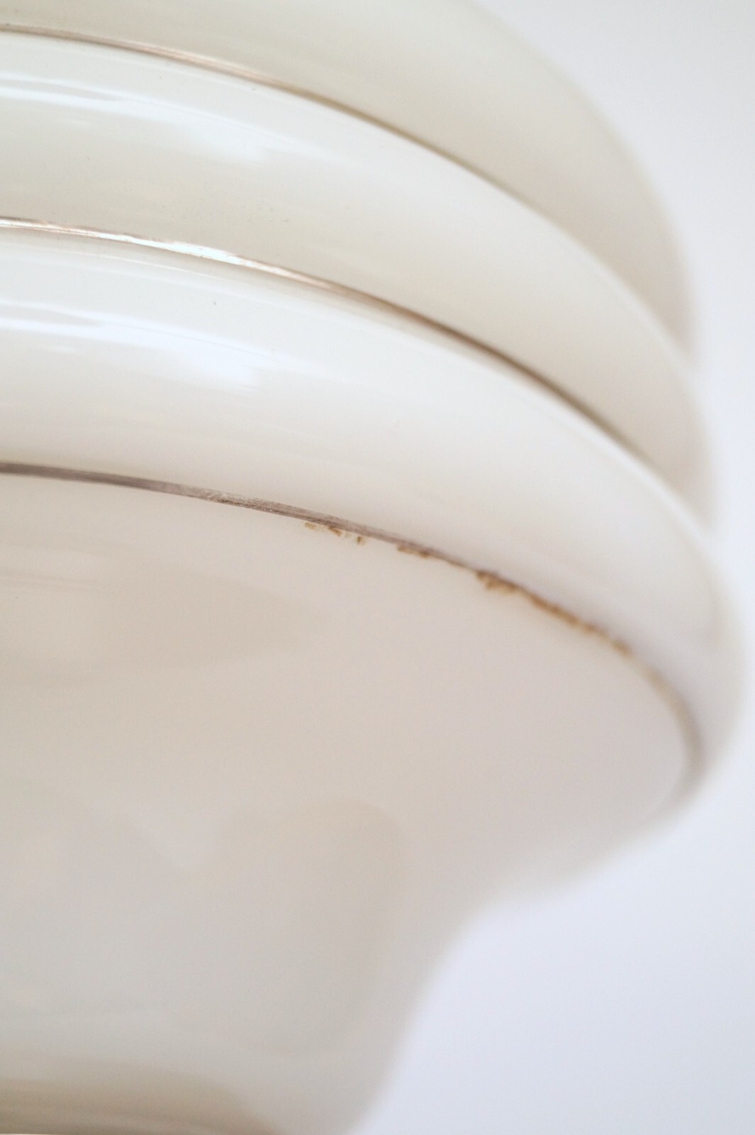Original opal glass, surrounding, part of rubbed strip decor, great lighting effect.