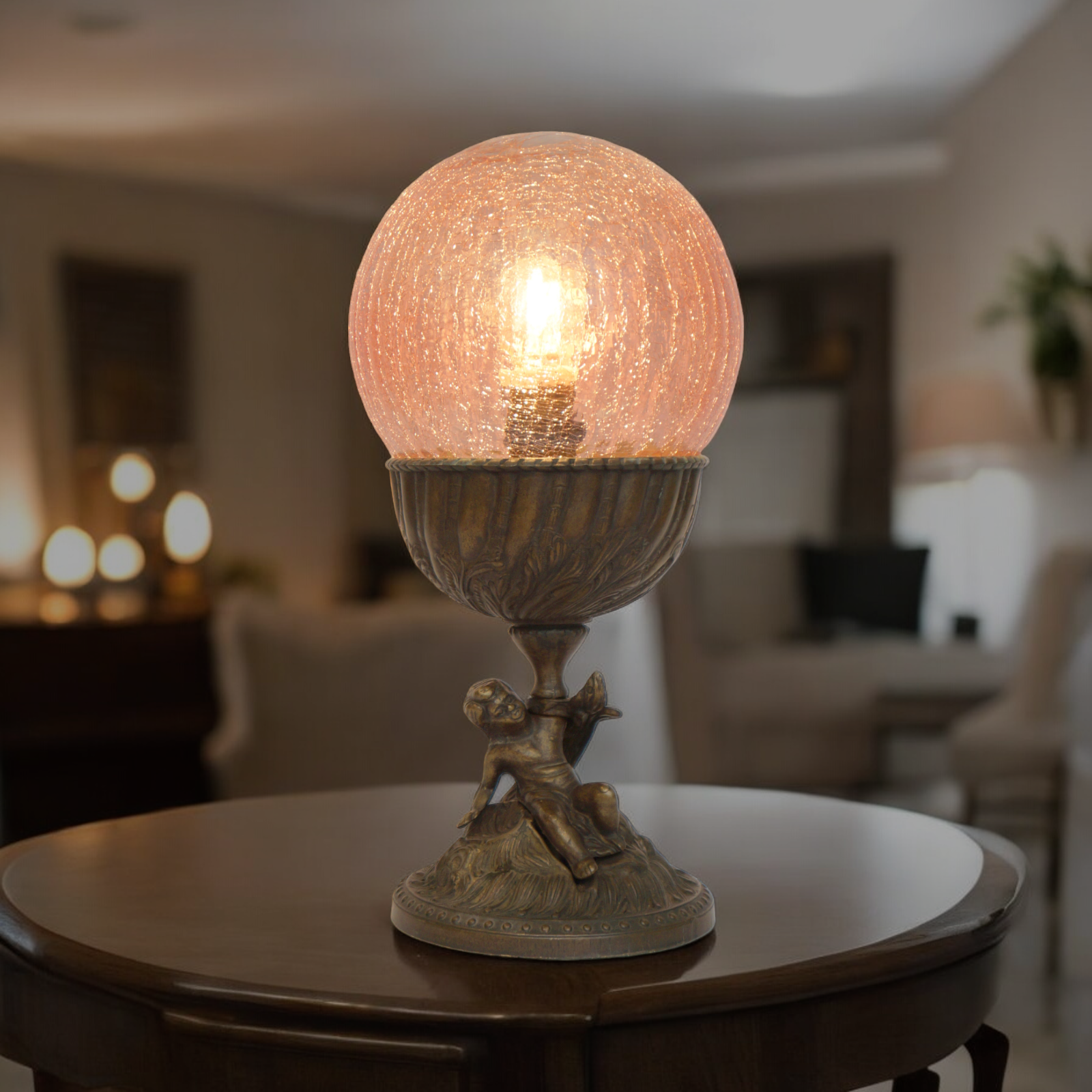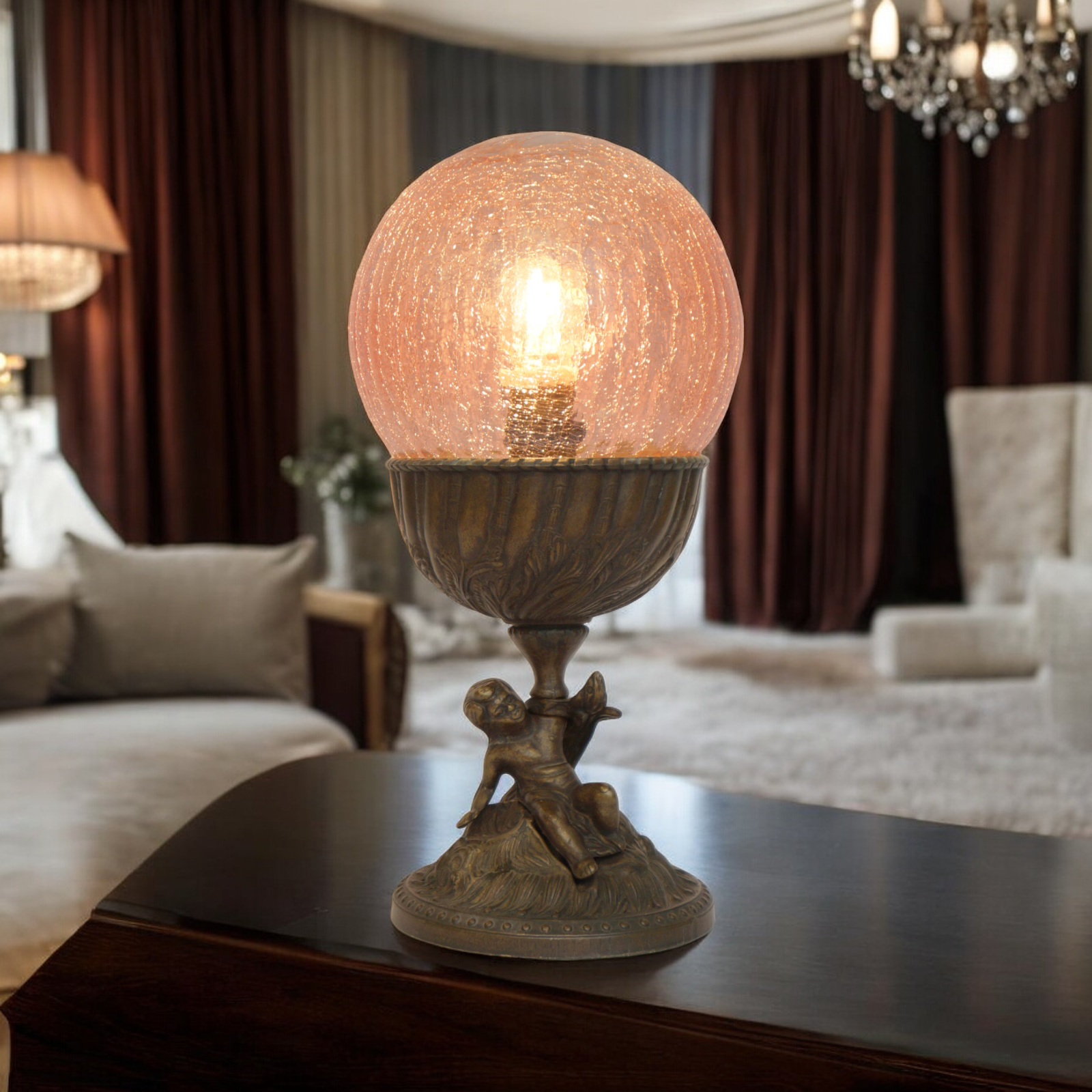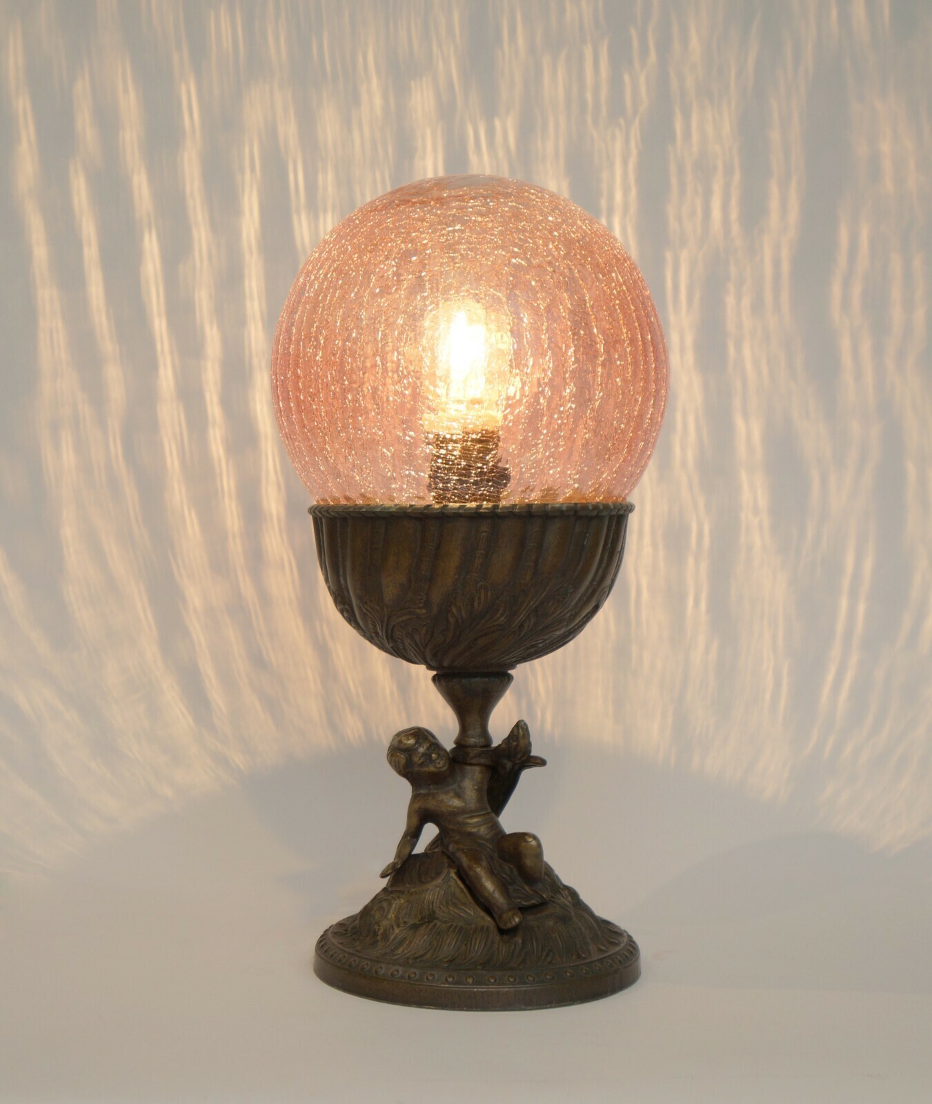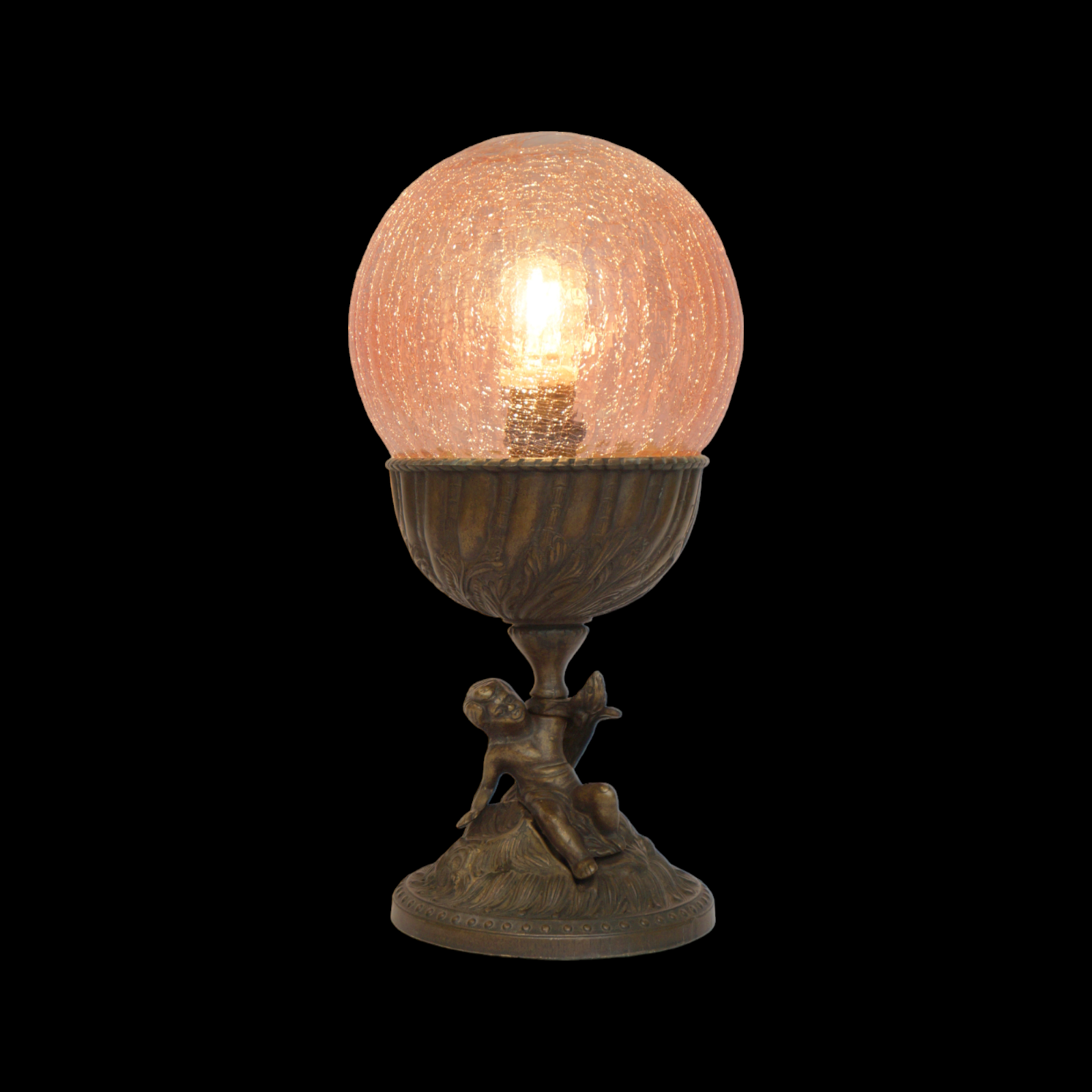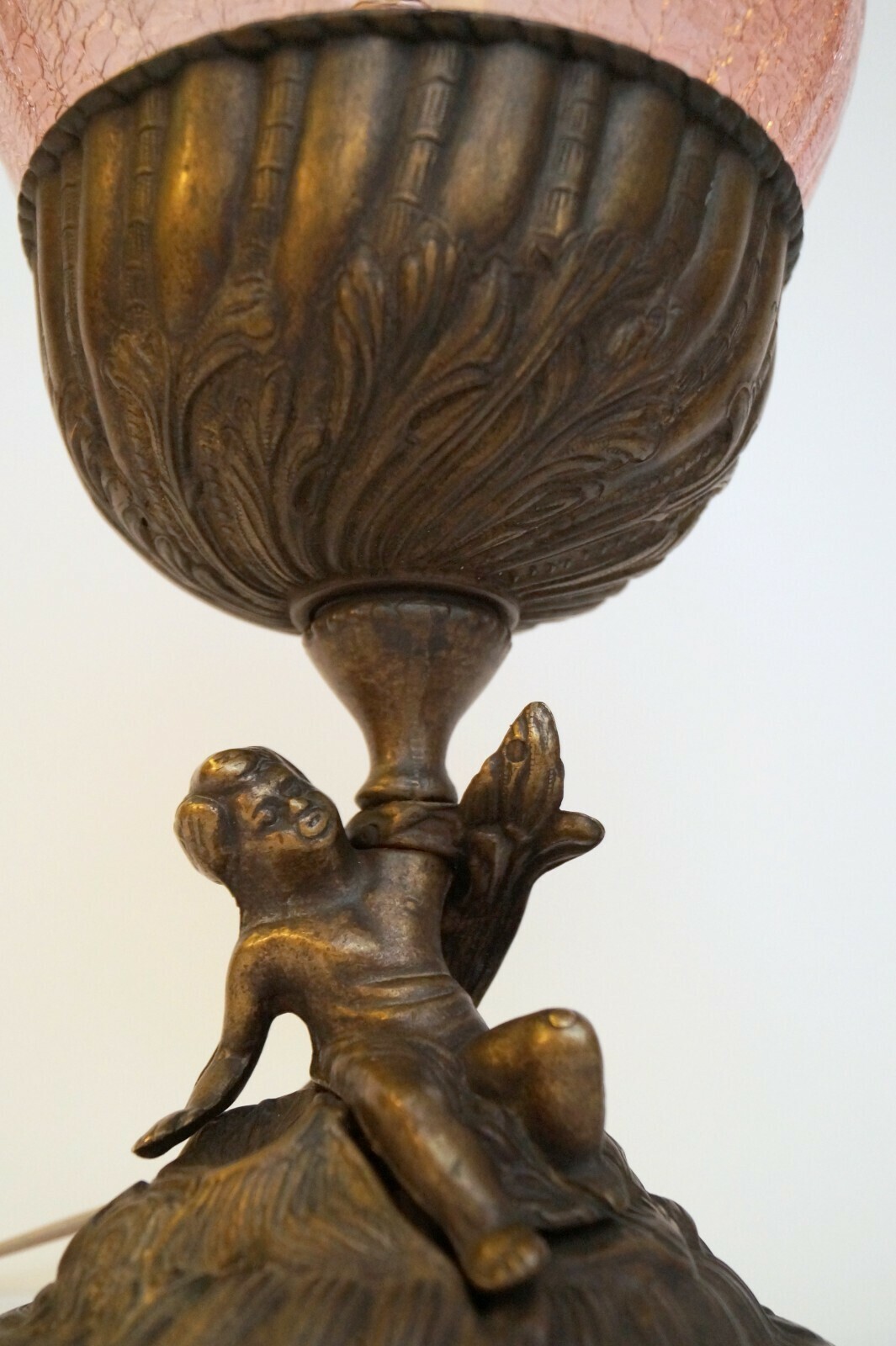 Romantic Art Nouveau Table Lamp " Pinky " Putto Brass Lamp Unique