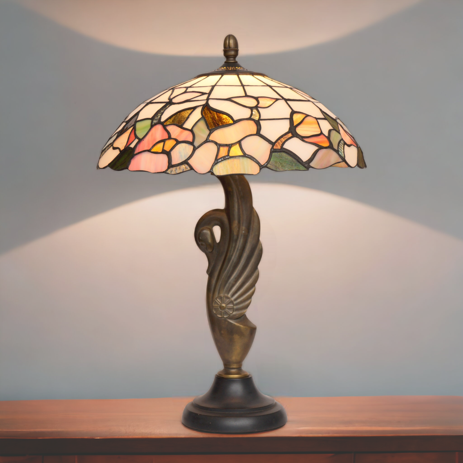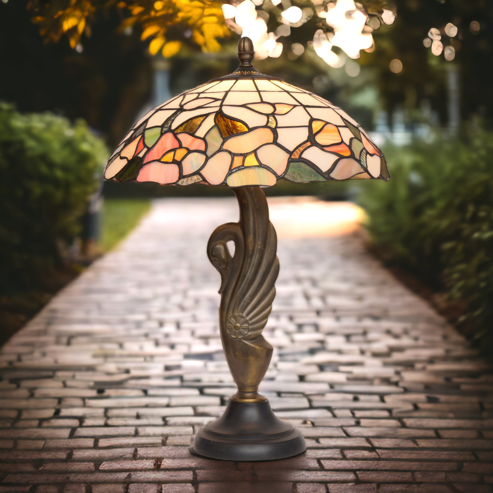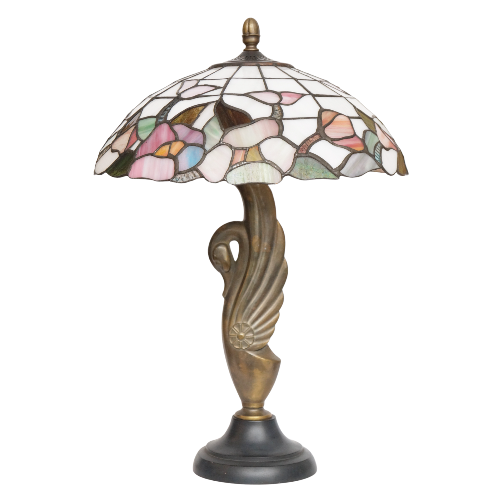 Art Deco Table Lamp "Colored Swan" Bronze Tiffany Lamp Unique Piece