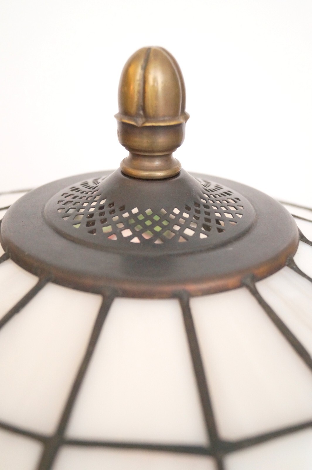 Important: We recommend using only LED lamps (filament bul!) For each of our lights. In addition to that of up to 12 times higher efficiency, the very low heat development of an LED bulb ensures the lifespan of the electrical system and the precious original glasses of its lamp. LED lamps available everywhere or here . Also suitable for LED/energy-saving bulbs with higher light output. Sale without decoration and lamp! Further Art Nouveau lights in our shop.