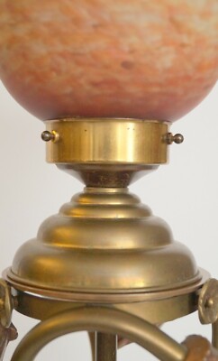 Brass lamp berlin coffee house light table lamp antique opal glass unique (no.