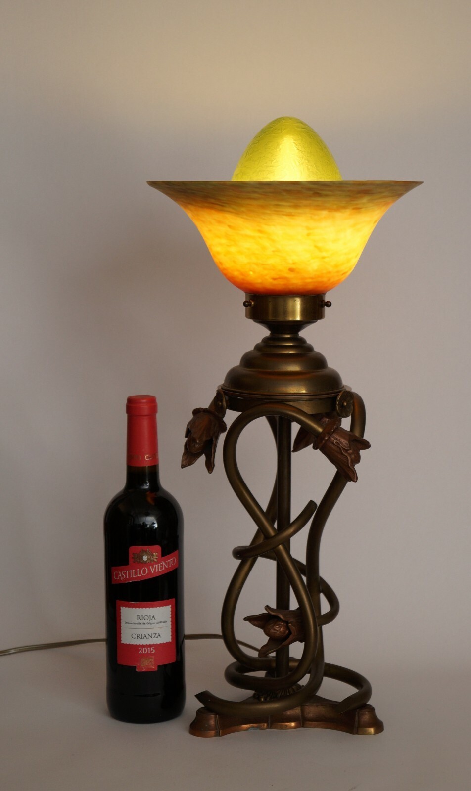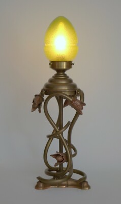 Unique Art Nouveau Table Lamp "Cuckoo's Nest" Collector Table Laying Brass Lamp