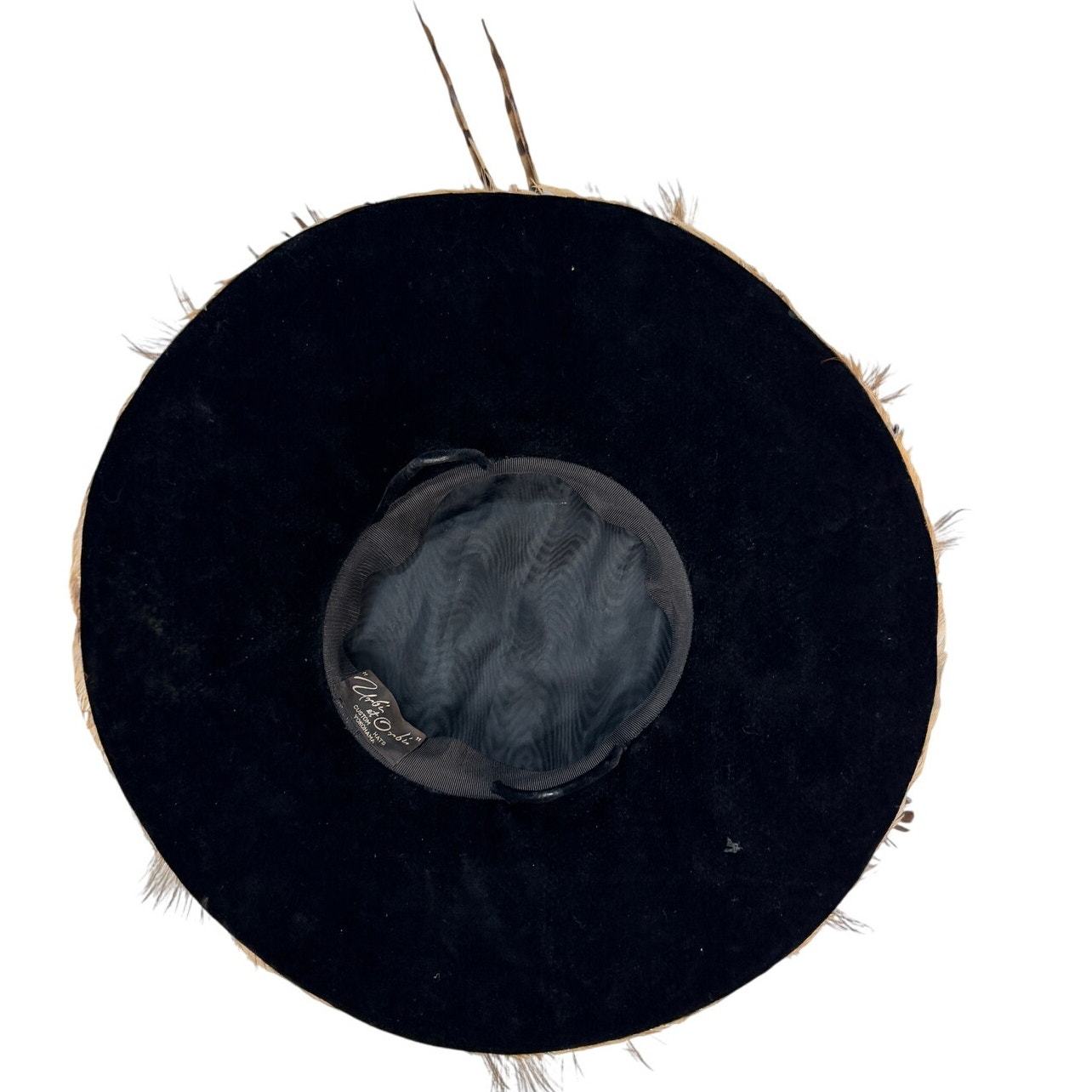 VTG 1940s 1950s Wide Brim Pheasant Feather Hat Yokohama Dramatic Couture Look