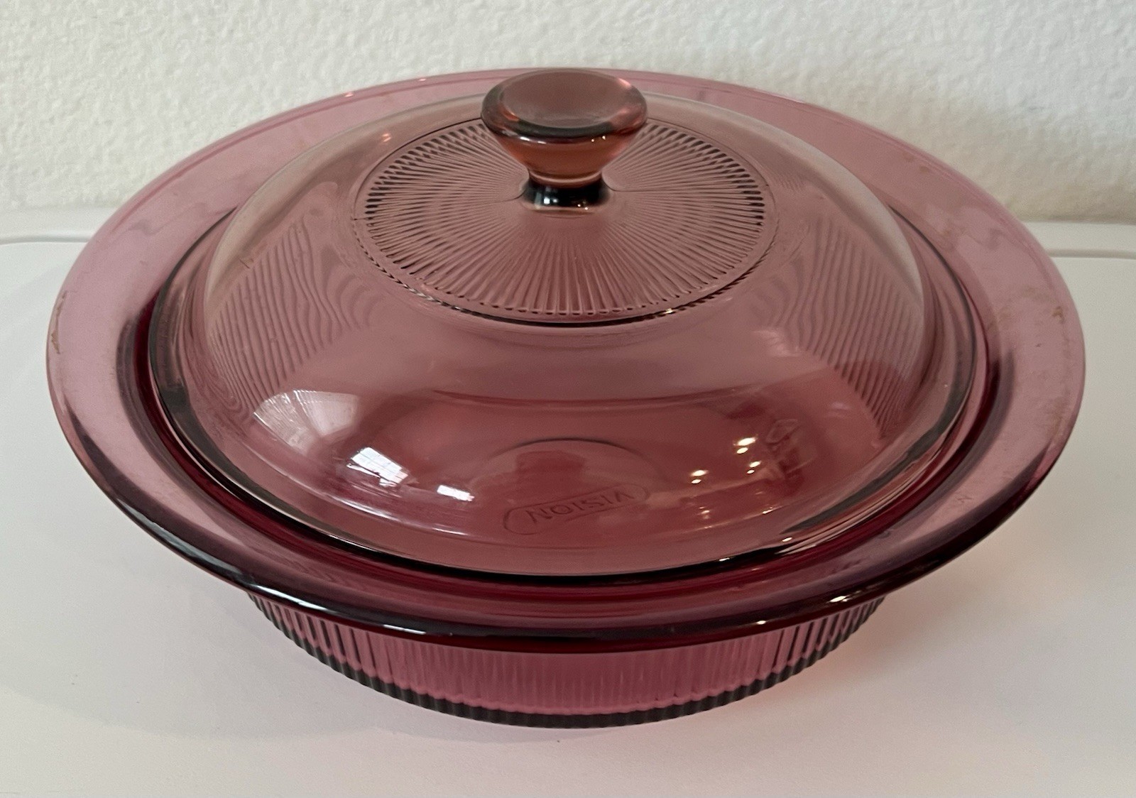 Corning Vision Ware 24 oz 2.5 qt Cranberry Casserole Dish V-30-B Pyrex Lid V-1-C