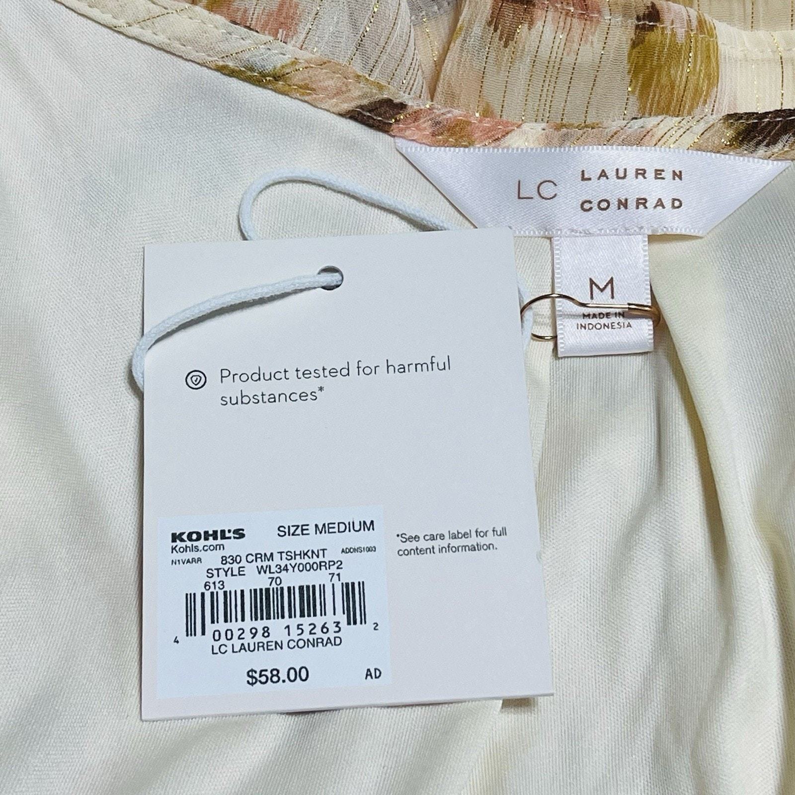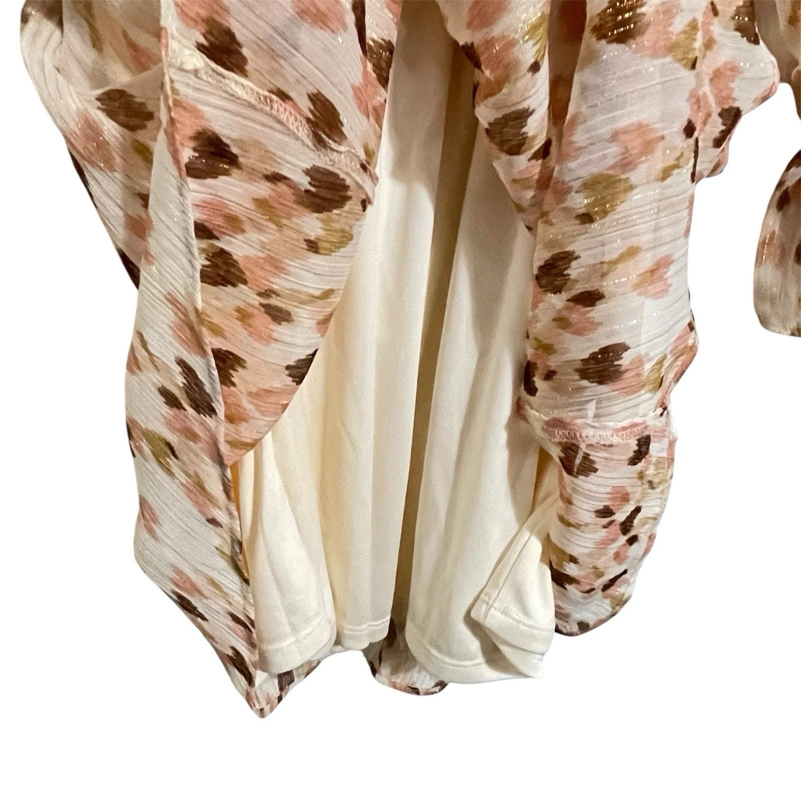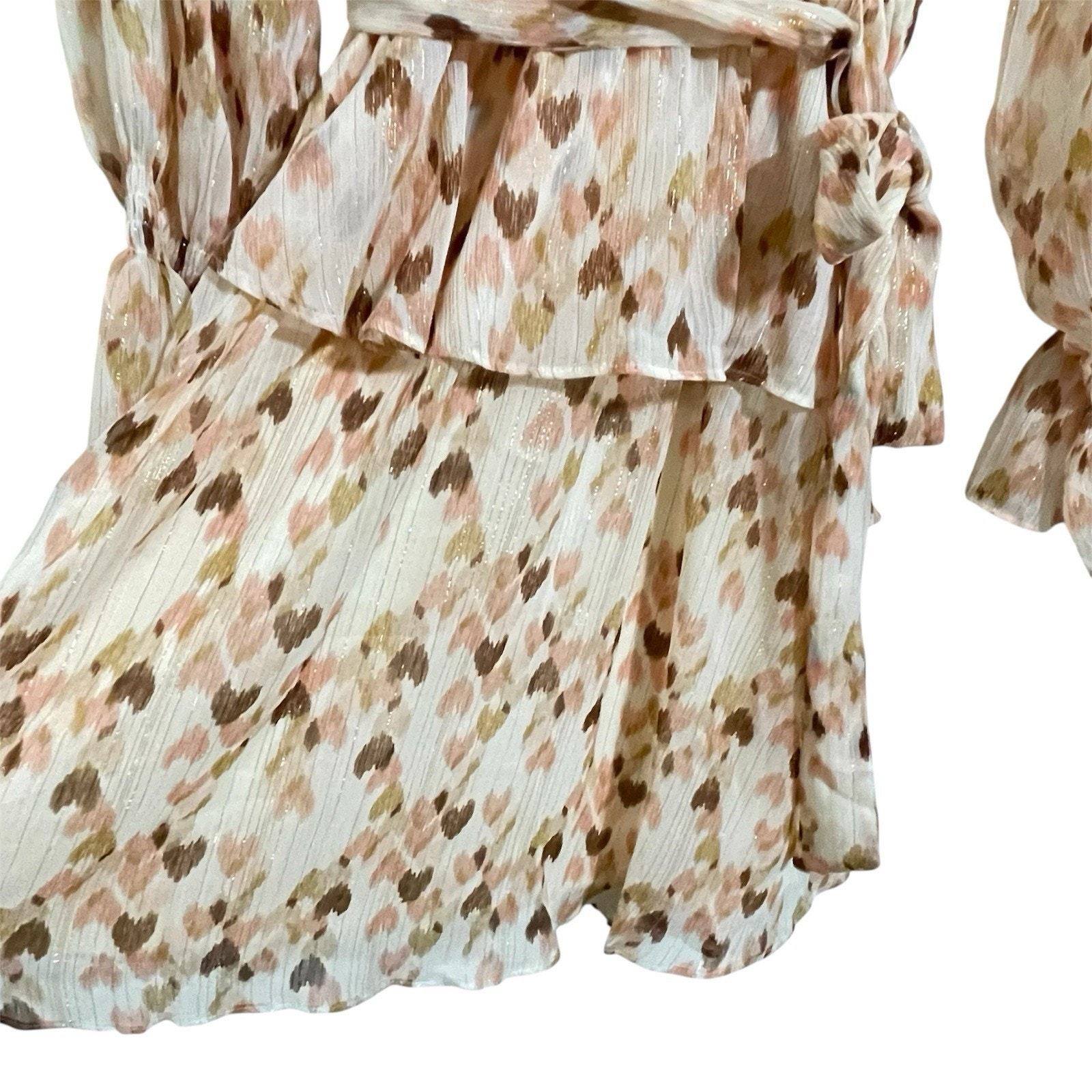 LC Lauren Conrad Peplum Waist Faux Wrap Mini Dress Size M Peach Beige Gold NWT
