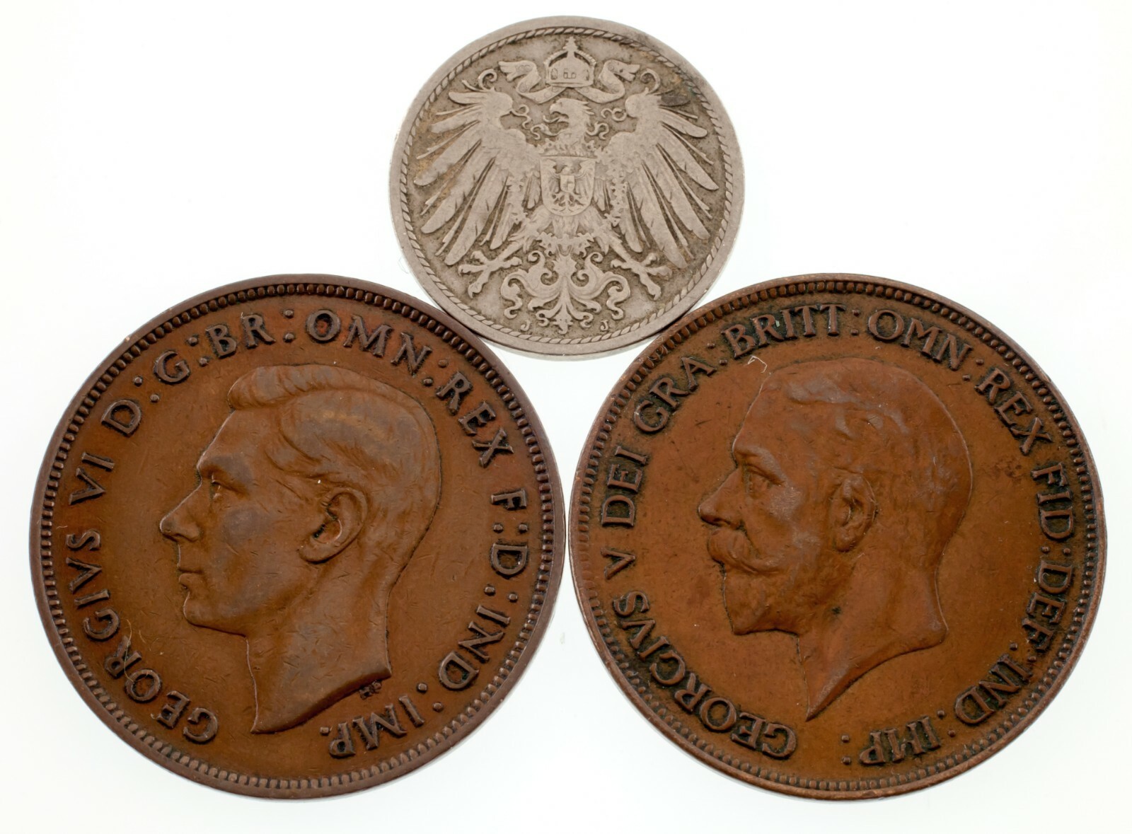 Lot de 3 monedas Alemania 1900 10 Pfennig y Gran Bretaña 1 Penny (2 monedas) XF