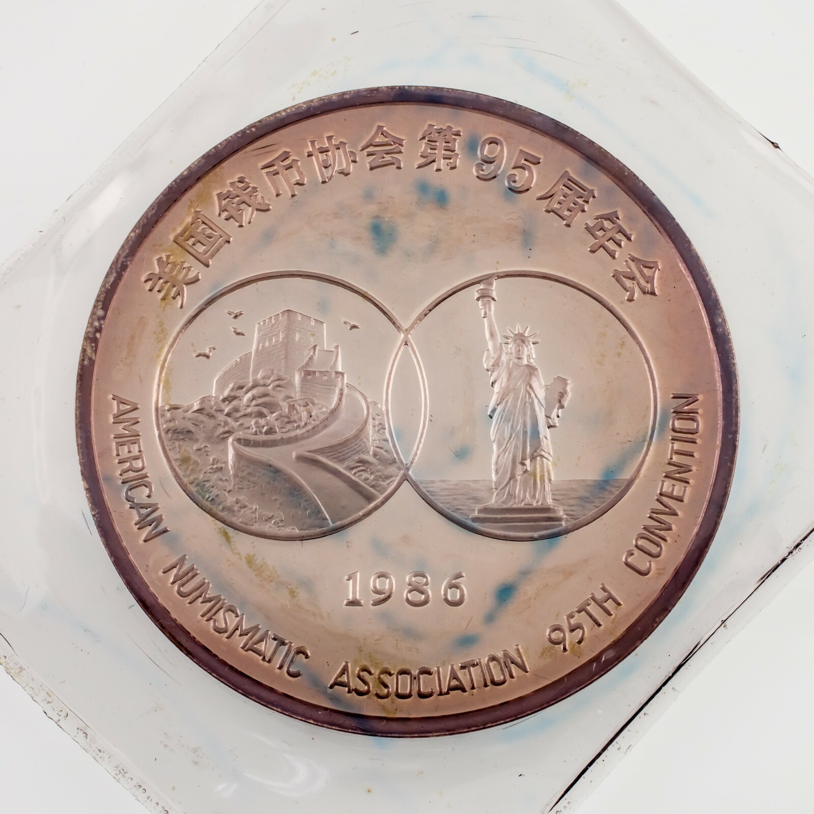 1986 Argent .999 5 Oz. Panda pour la 95e convention de l'American Numismatic Association