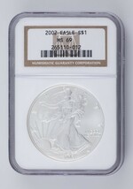 2002 $1 Aigle D'Argent Américain Graded Par NGC Comme MS69 ! Bel Aigle D'Argent