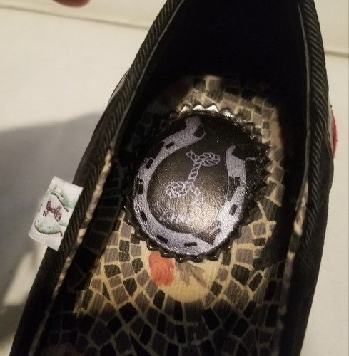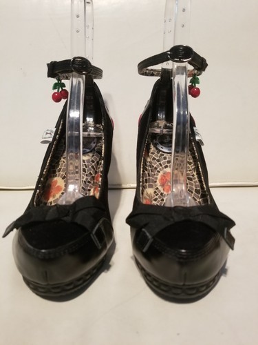The Miss L Fire Rare Cherries Diamond Wedge Velvet Rockabilly Pinup VLV Shoes in size 37 (best for US 6.5 to snug 7) are vintage-style heels with an almond toe shape and ultra-high wedge heel. These black velvet shoes feature a buckle closure, bow accents, and a standard shoe width. Perfect for weddings, parties, or casual occasions, the shoes are adorned with cherry pattern and a touch of retro 50s and 90s flair. With slip-resistant outsole and adjustable strap, these stylish and comfortable heels are a must-have for any pinup or retro-loving woman. 4 inch heel. Please know your Miss L Fire as I don't take returns. I use recycled materials for packaging whenever possible. BOx3 Please ask questions as all sales are final.