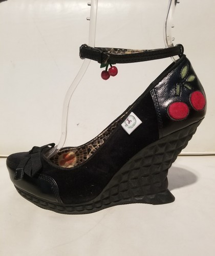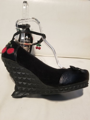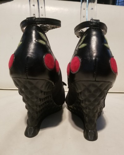 Miss L Fire Rare Cherries Diamond Wedge Velvet Rockabilly Pinup VLV Shoes 37